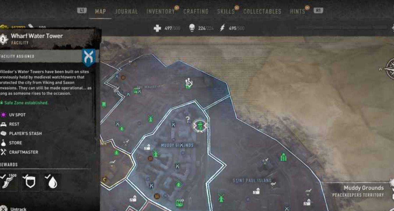 Отправляйтесь в район Muddy Grounds, где находится водонапорная башня на верфи Уорфа. Если сооружение открыто, просто войдите внутрь. В случае если башня закрыта, обойдите ее по правому краю и используйте поток воздуха для залёта на параплане. Внутри спуститесь в самый низ — подвал будет частично затоплен. Сейф расположен под рамой или порталом, рядом с УФ-факелом. Также в этом месте можно найти дополнительные полезные предметы и ориентиры, которые помогут в дальнейшем исследовании района. Во время поиска будьте внимательны: под водой могут скрываться заражённые, а узкие коридоры усложняют манёвры.