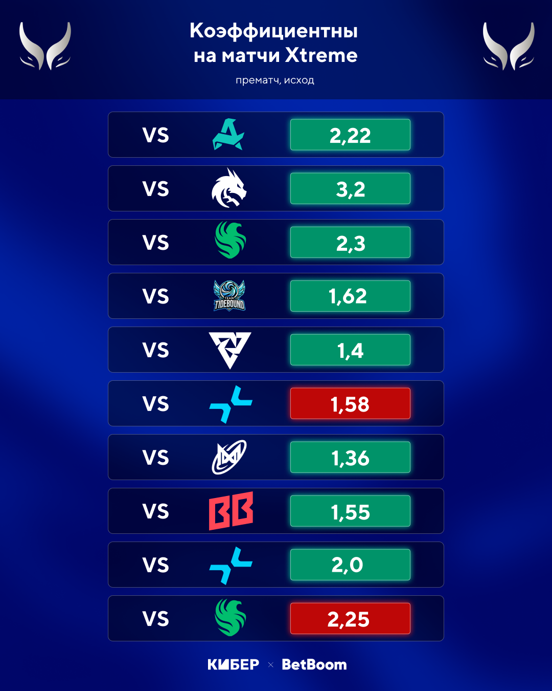 Xtreme заслуживала победы ничуть не меньше. До начала Инта BetBoom давала коэффициент 15 на победу команды в турнире. На групповом этапе пятерка считалась аутсайдером в каждом матче, кроме дерби с Tidebound, что не помешало пройти швейцарку без поражений.