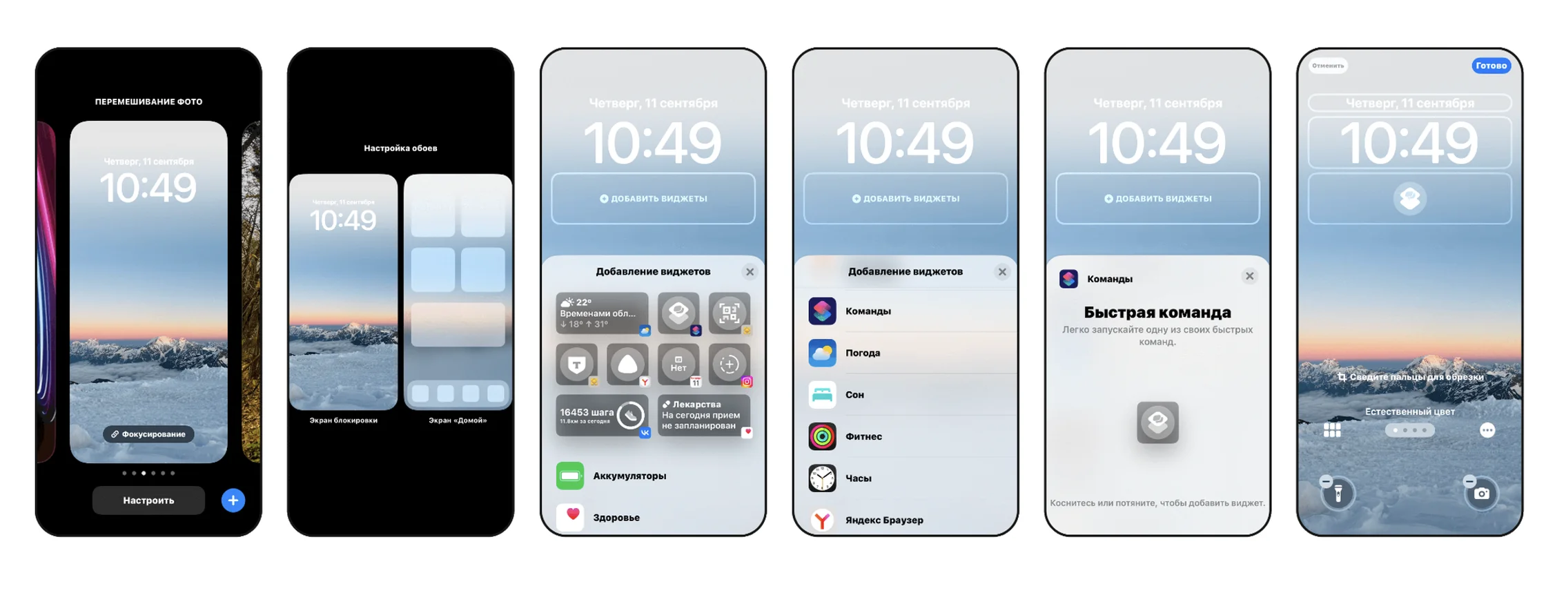 • Далее на экране блокировки айфона удерживайте пустую область, чтобы появилась кнопка «Настроить» и нажимаем на «Добавить виджет».