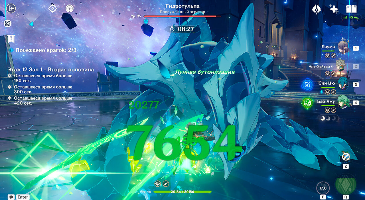 Если вы успели выкрутить и прокачать Лауму и Айно до 90 уровня с талантами, артефактами и так далее, вам будет гораздо проще пройти эту половину. Тем не менее, строгого запрета на других героев нет, можно взять обычную команду на бутонах.
