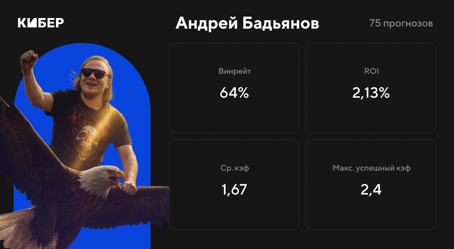 64% успешных прогнозов. Статистика ставочного онлайна Кибера