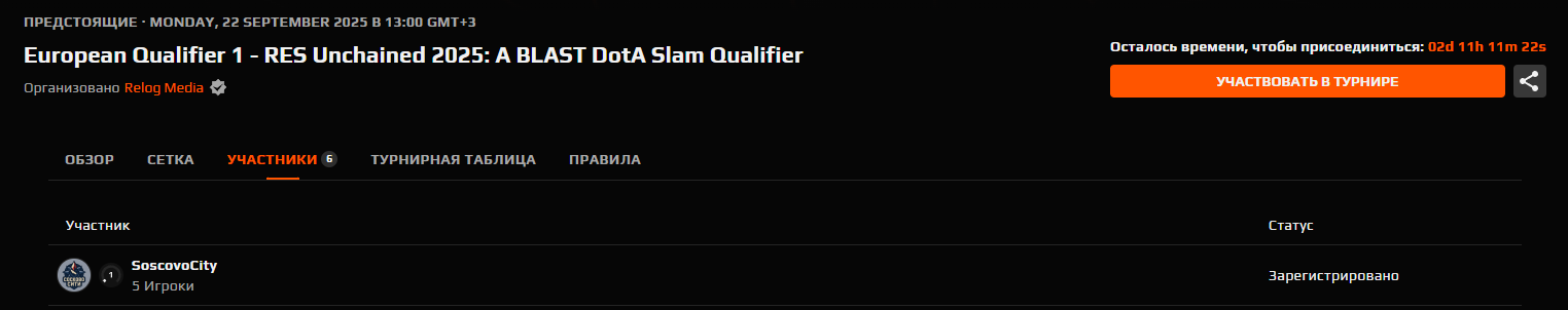 После прохождения RES Unchained 2025: BLAST Slam Europe Qualifier команда получит приглашение на основной турнир BLAST Slam. Для принятия приглашения и участия необходимо одно из следующих условий: