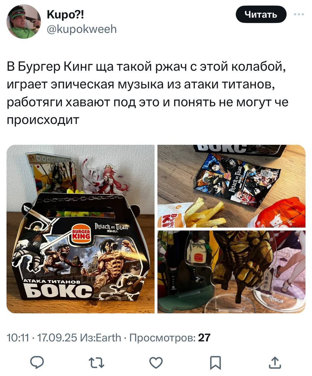 «Бургер Кинг» в огне. Фанаты скупают боксы с «Атакой титанов», а фигурки перепродают втридорога