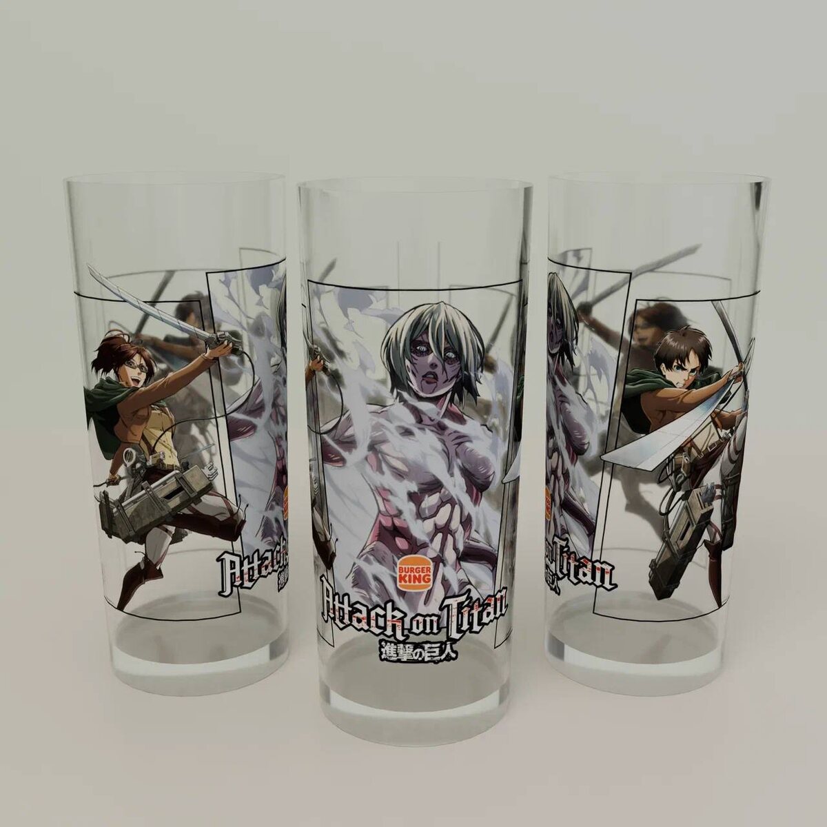 Сами коробочки выполнены в стилистике аниме и украшены изображениями персонажей. С 17 октября стартуют продажи стеклянных стаканов с изображениями Атакующего и Колоссального титана и Женской особи.