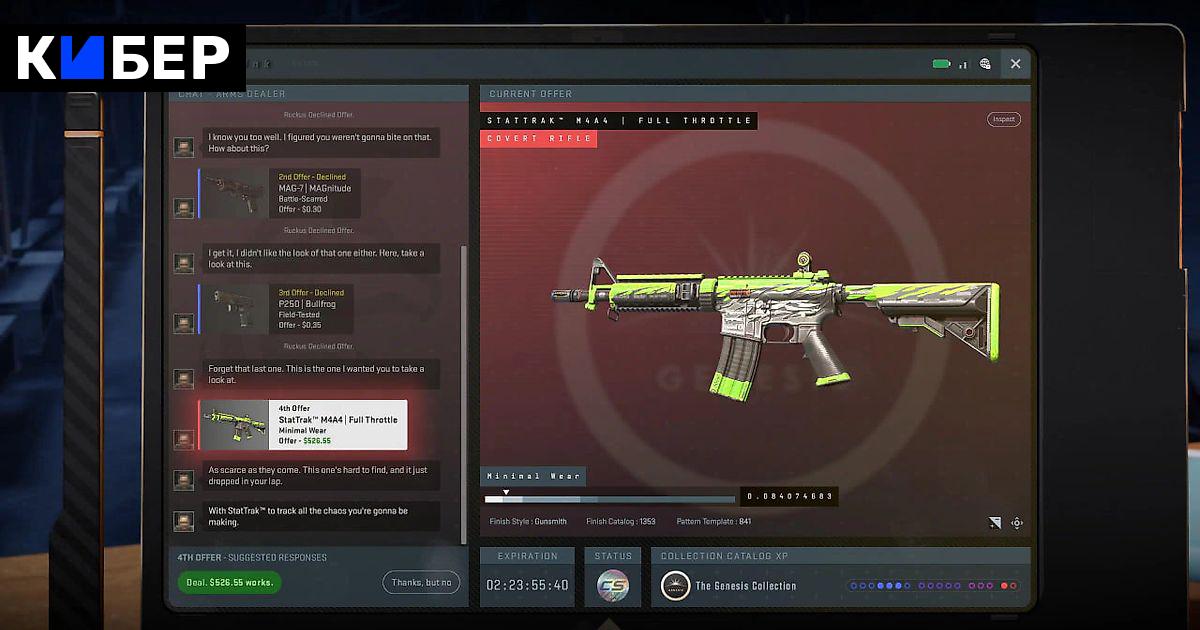 Cкин на M4 с ST игра предлагает купить за $520, без ST такой скин на $450 дешевле.