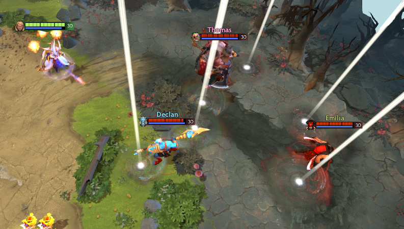 Важно помнить, что урон от Sun Strike распределяется по всем целям. Если попасть способностью сразу по двум целям, то они получат только по половине урона.