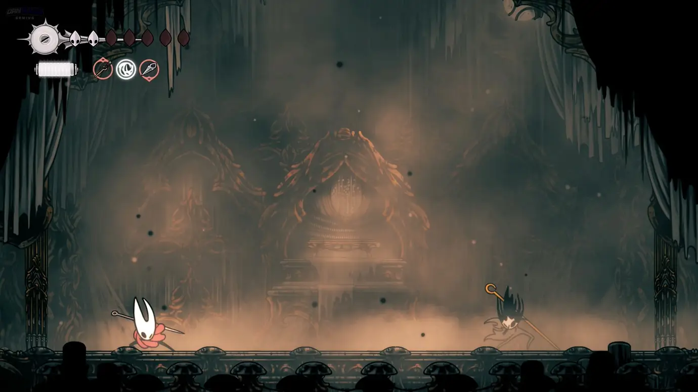 Заводные танцоры – уникальный дуэт в залах Цитадели. Они движутся синхронно, создавая сложные комбинации ударов, а белые линии на арене заранее указывают траекторию атак. В разных фазах их ритм меняется: сначала они быстры, затем начинают действовать поочередно, что немного облегчает задачу. После гибели одного из них второй становится вялым и постепенно теряет силы. Этот бой сочетает красоту и опасность, делая Танцоров запоминающимся испытанием. В списке боссов Hollow Knight Silksong они символизируют изящество и смертельную синхронность.