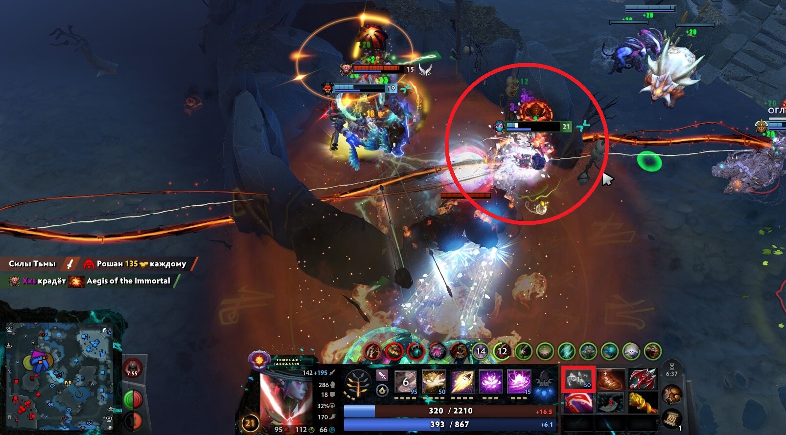 В динамике момента я думал Алан просто не нажал БКБ, а он, оказывается, сам лишил себя этой возможности. Переложил Black King Bar, зато оставил Power Treads, Dragon Lance и Blink Dagger – любой предмет в этой ситуации выглядит куда хуже. Но Алан ошибся: пожонглировал БКБ’шкой, а затем поймал Roar of Retribution Рошана и стан Кента. Похоже на ошибку новичка, которая стоила команде финала The International.