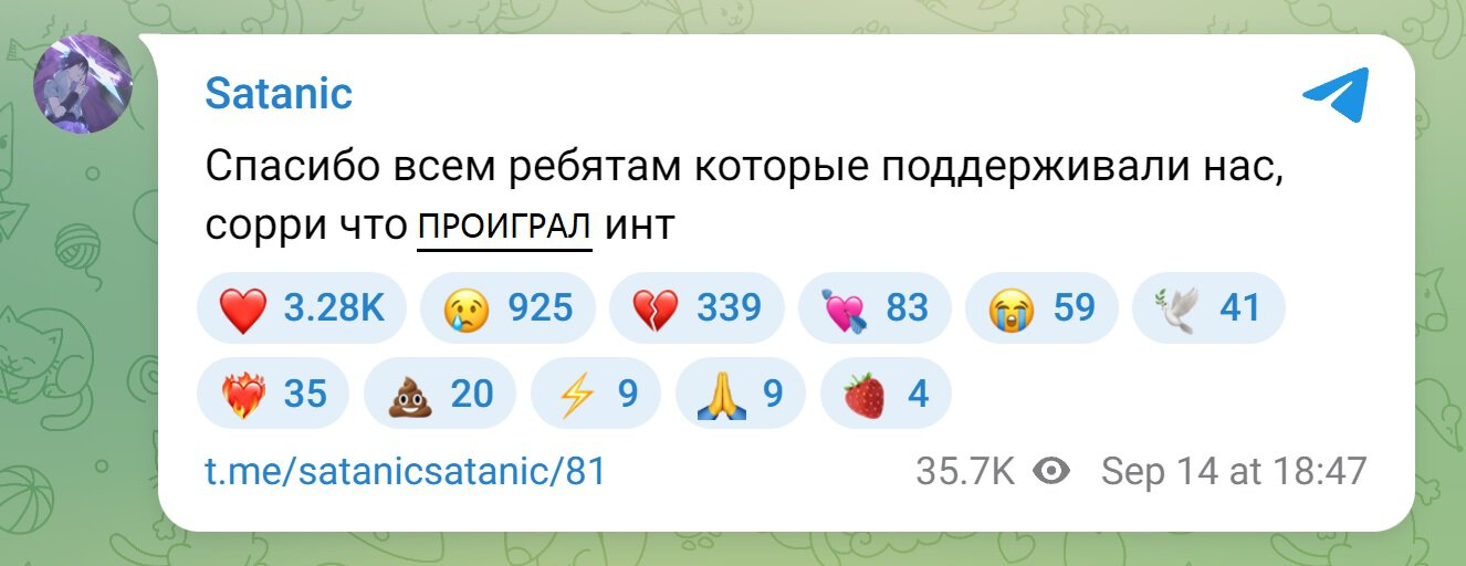 Сатаник в одиночку проиграл Инт. Так не косячите даже вы