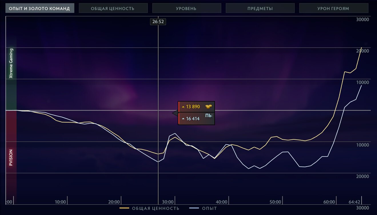 На третьей карте к получасу игры PARIVISION вела ~14 тысяч золота.