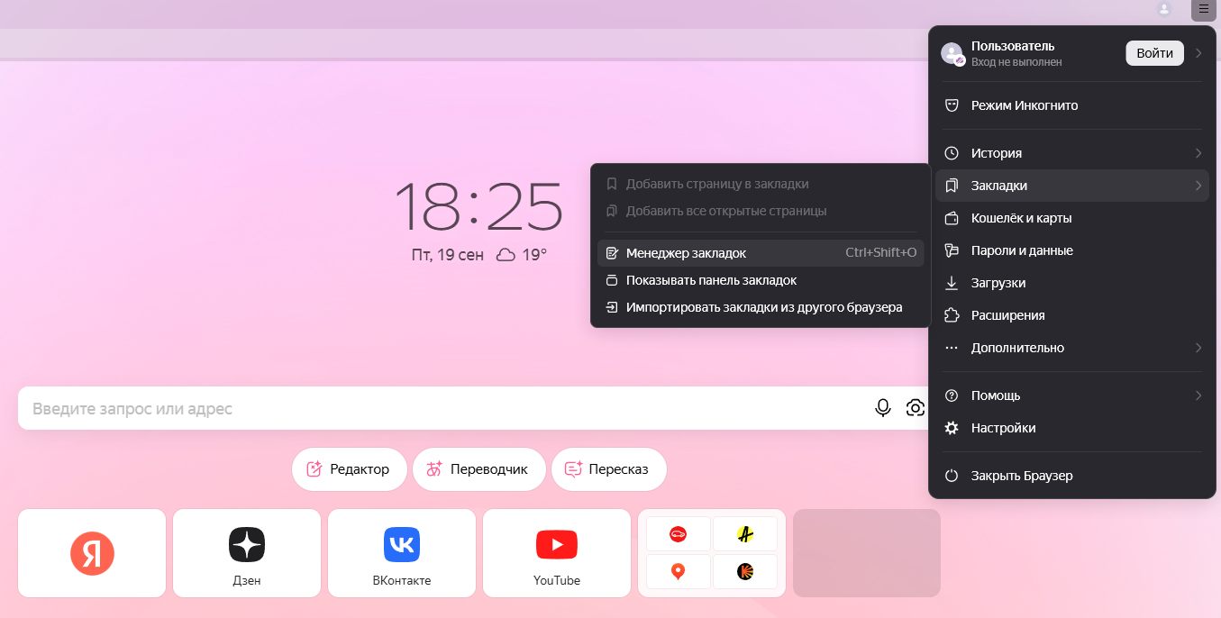 Перейдите в «Закладки и списки», далее – «Диспетчер закладок».