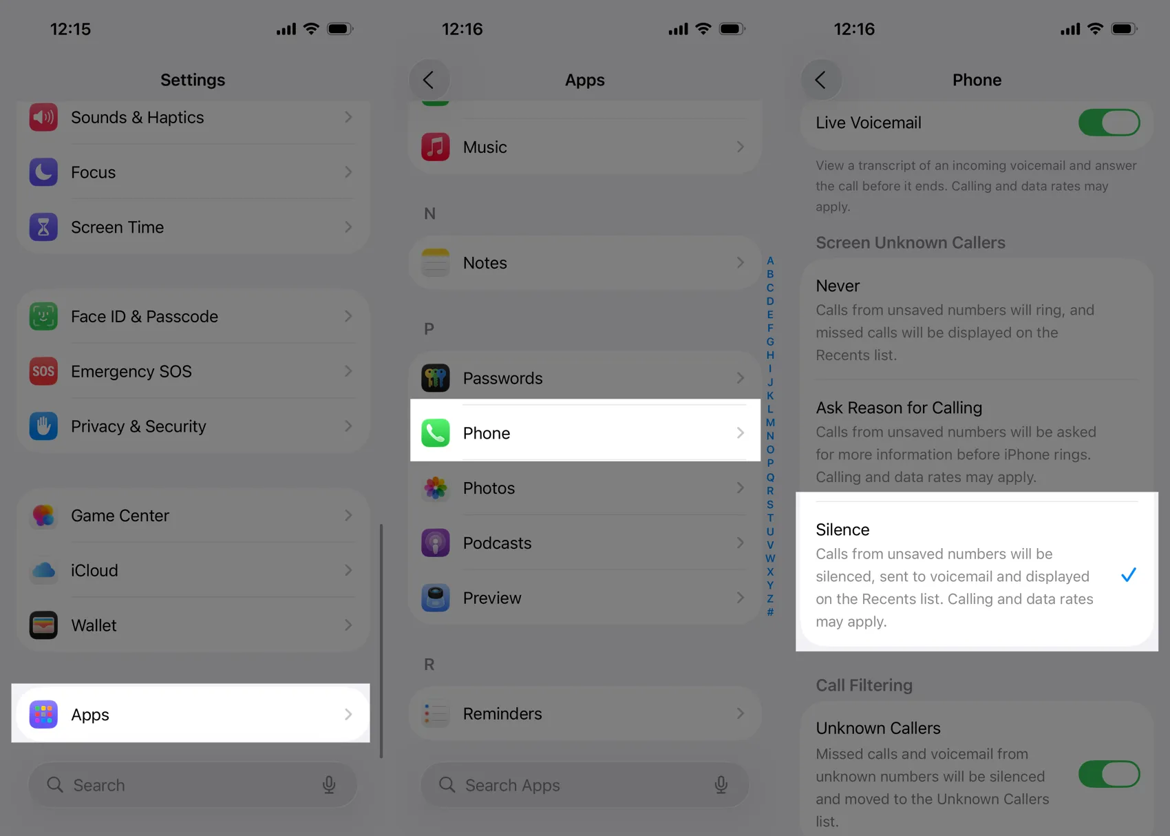 Главное изменение кроется в настройках. Теперь вместо одного стандартного тумблера «Заглушение неизвестных» Apple внедрила на iPhone, iPad и Mac целую систему с несколькими опциями, среди которых вам и предстоит выбрать: