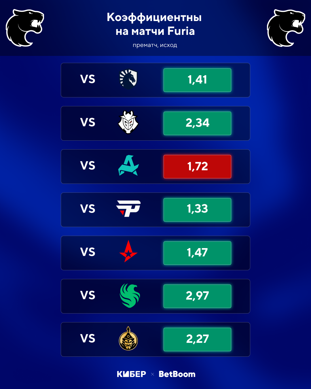 Перед началом FPG #2 Furia делила третью строчку с G2 в прогнозах BetBoom. Но при Falcons и Mongolz подобная оценка выглядела завышенной. И первые результаты это только подтвердили: тяжелая победа над Liquid, непростой матч против G2 и поражение от Aurora. И только реванш в матче с Pain подарил шанс на выход в плей-офф.