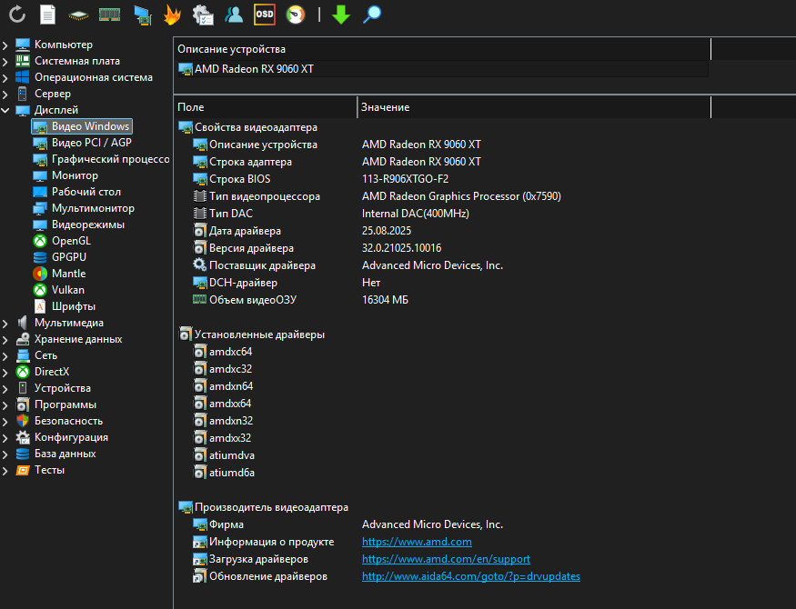 Здесь вы найдете информацию о модели вашей видеокарты и ее основных характеристиках.