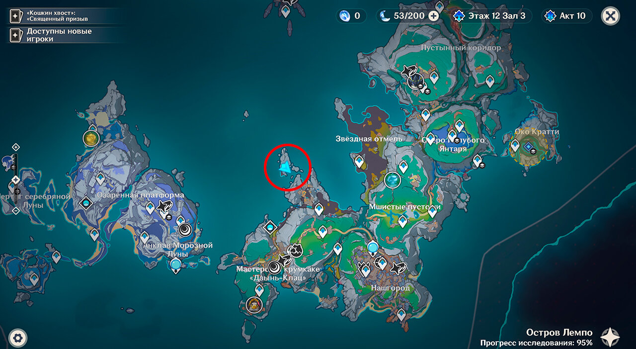✅ Стоит взять высокого персонажа или героя с альтернативным спринтом без отката (Аяка, Мона), чтобы быстро перемещаться с одной стороны озера на другую.