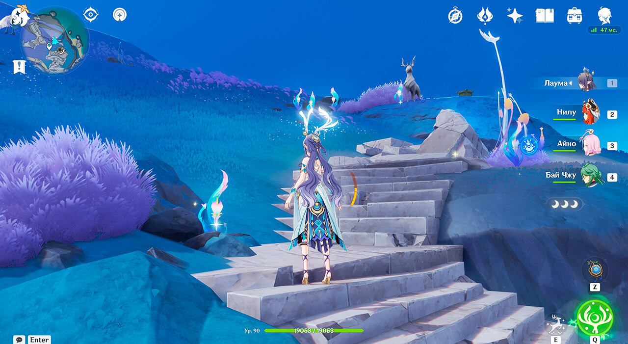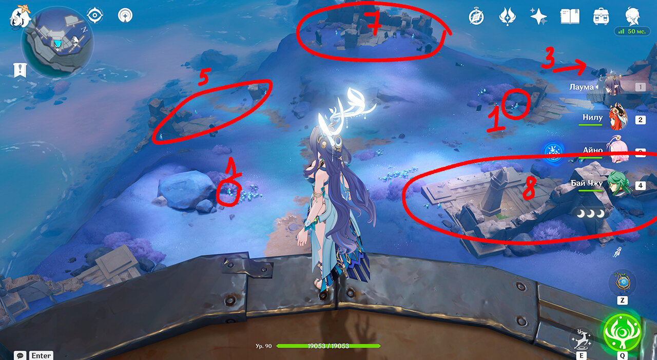 Здесь пригодятся Айно или Лаума в отряде, а также отметки точек сбора, чтобы ничего не пропустить. Еще три цветка находятся в правом нижнем углу, примерно где у Лаумы ульта, прямо у лестницы наверх.