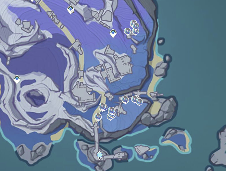 Перед началом фарма возьмите в отряд бесплатную Айно – она отмечает диковинки на мини-карте. Такими же способностями обладают Лаума и Флинс. Соберите один инеевый цветок, зайдите в инвентарь и нажмите на него. В описании справа выберите «Области сбора» для облегчения фарма. Не забудьте съесть что-нибудь для пониженного расходования выносливости, а также добавить в отряд двух Анемо героев для ускорения передвижения.