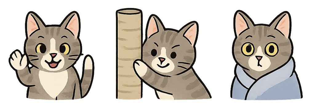 «Ты – профессиональный дизайнер стикеров для мессенджеров (Telegram и WhatsApp) Создай уникальный стикерпак на основе фото моей кошки. Все стикеры должны быть узнаваемыми и передавать ее характер, но при этом оставаться стилизованными и удобными для использования в чатах.