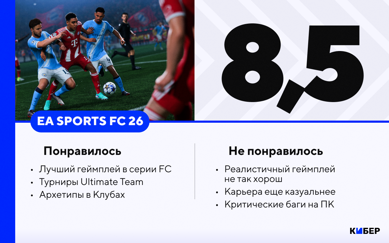19 сентября для владельцев Ultimate-издания вышла FC 26 (26 сентября игра станет доступна всем). Кибер опробовал ранний доступ и удивился геймплею. Неужели у EA наконец-то получилось? Если коротко, пока да.