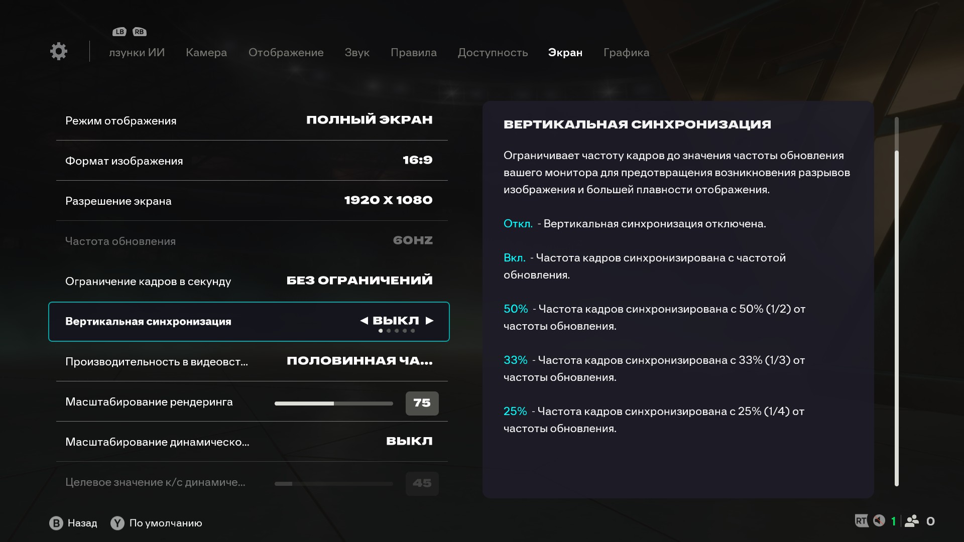 Проблемы начались в первом же матче. Я сыграл один тайм в Rivals, а во втором игра безумно залагала до 5-10 fps и не приходила в себя. Привычные настройки не работали, хотя системные требования остались точно такими же. В итоге меня спас режим полного экрана без вертикальной синхронизации и снижение масштабирования рендеринга.