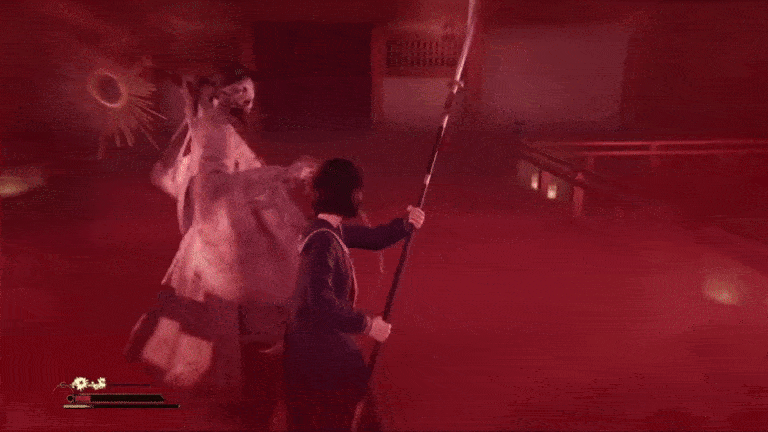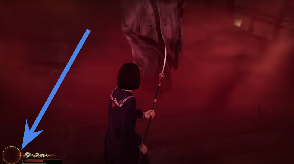 Особые атаки. Это удары, которые расходуют запас здравомыслия. Чтобы их выполнить, зажмите кнопку концентрации (L2 на PS5) и дождитесь, пока заполнится круглая шкала. После этого нажмите кнопку слабой атаки (R1 на PS5) и Хинако нанесет мощный удар. Такие атаки не только наносят большой урон, но и могут прерывать действия Сакуко.