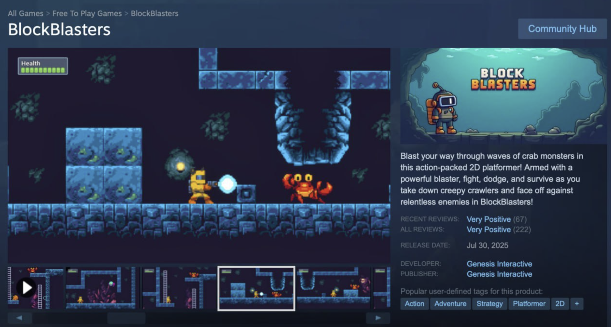 В Steam разместили фейковую игру Block Blasters с вредоносным криптографическим ПО. За месяц работы 2D-платформера преступники похитили из кошельков пользователей не менее $150 000. В том числе пострадал стример, который собирал средства на лечение рака – парень лишился $32 000.