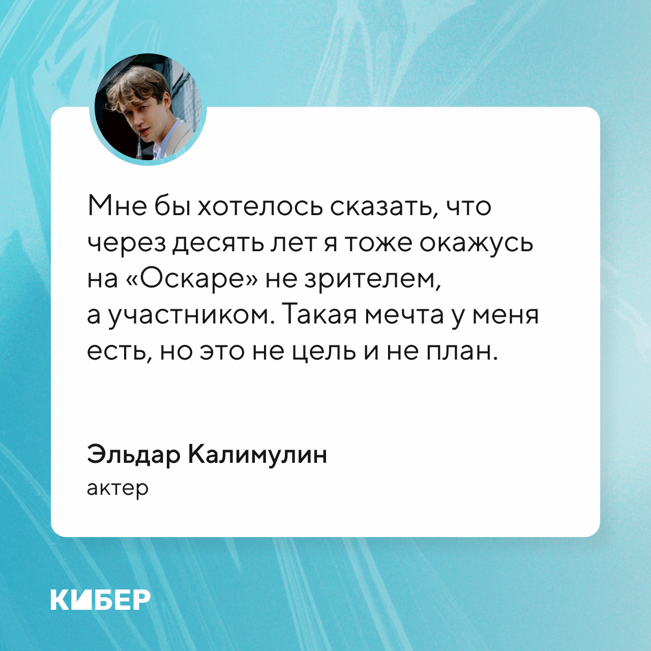 Мне бы хотелось сказать, что через десять лет я тоже окажусь на «Оскаре» не зрителем, а участником. Это было бы классно, и такая мечта у меня есть. Но это не цель и не план. Иногда я раз в девять месяцев думаю: «Было бы здорово». Классно, что у Юрки с Марком получилось. Было бы классно, если бы и у меня.