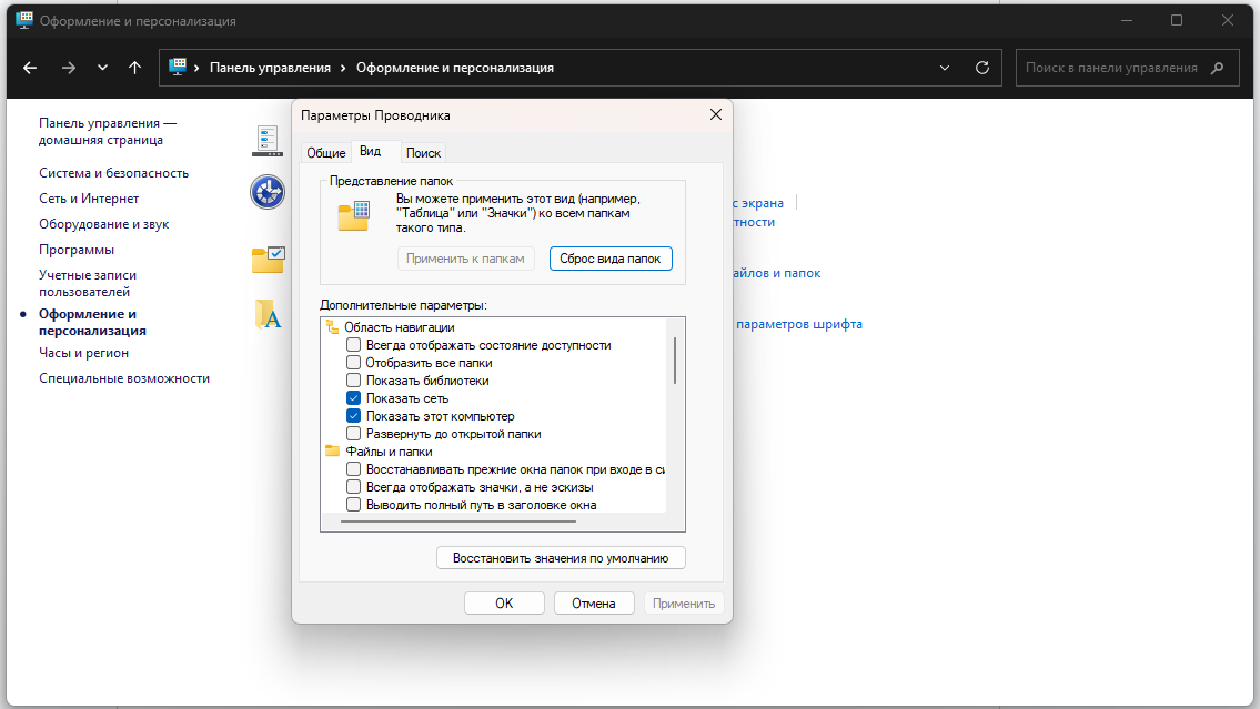 - Перейдите в раздел «Оформление и персонализация» и выберите «Параметры Проводника».