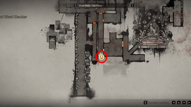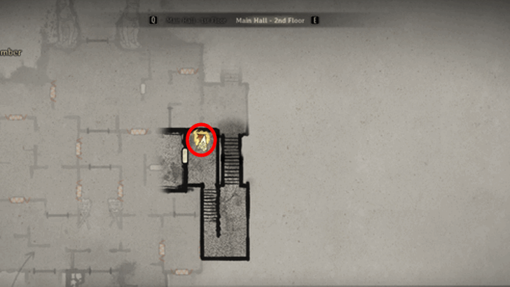 21. На втором этаже главного зала. Когда последуете за белой маской, поверните в другую сторону и поднимитесь по лестнице.