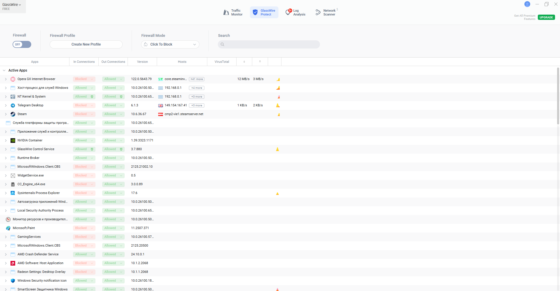 - Откройте список соединений и посмотрите, какие процессы активно выходят в интернет.