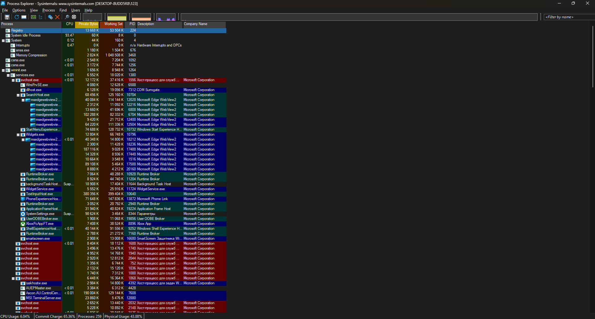 - Просмотрите список процессов: подозрительными будут записи без цифровой подписи, с непонятными именами или необычной нагрузкой.
