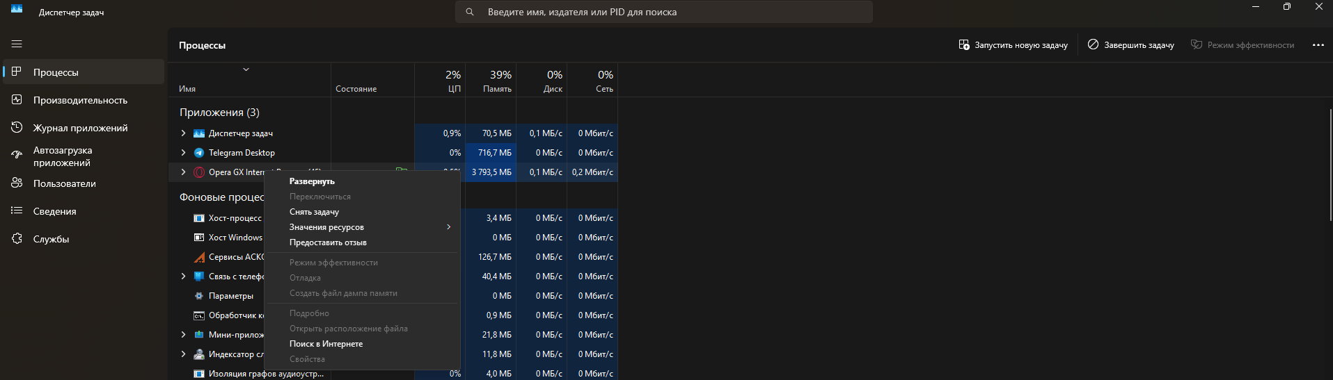 Чтобы их увидеть, откройте Диспетчер задач. Изучите список процессов. Чаще всего ненужными являются различные службы фонового обновления программ или «висящие» в трее приложения, которыми вы не пользуетесь в данный момент. Чтобы завершить такой процесс, просто нажмите на него правой кнопкой мыши и выберите «Снять задачу». Это мгновенно освободит занятую им оперативную память.