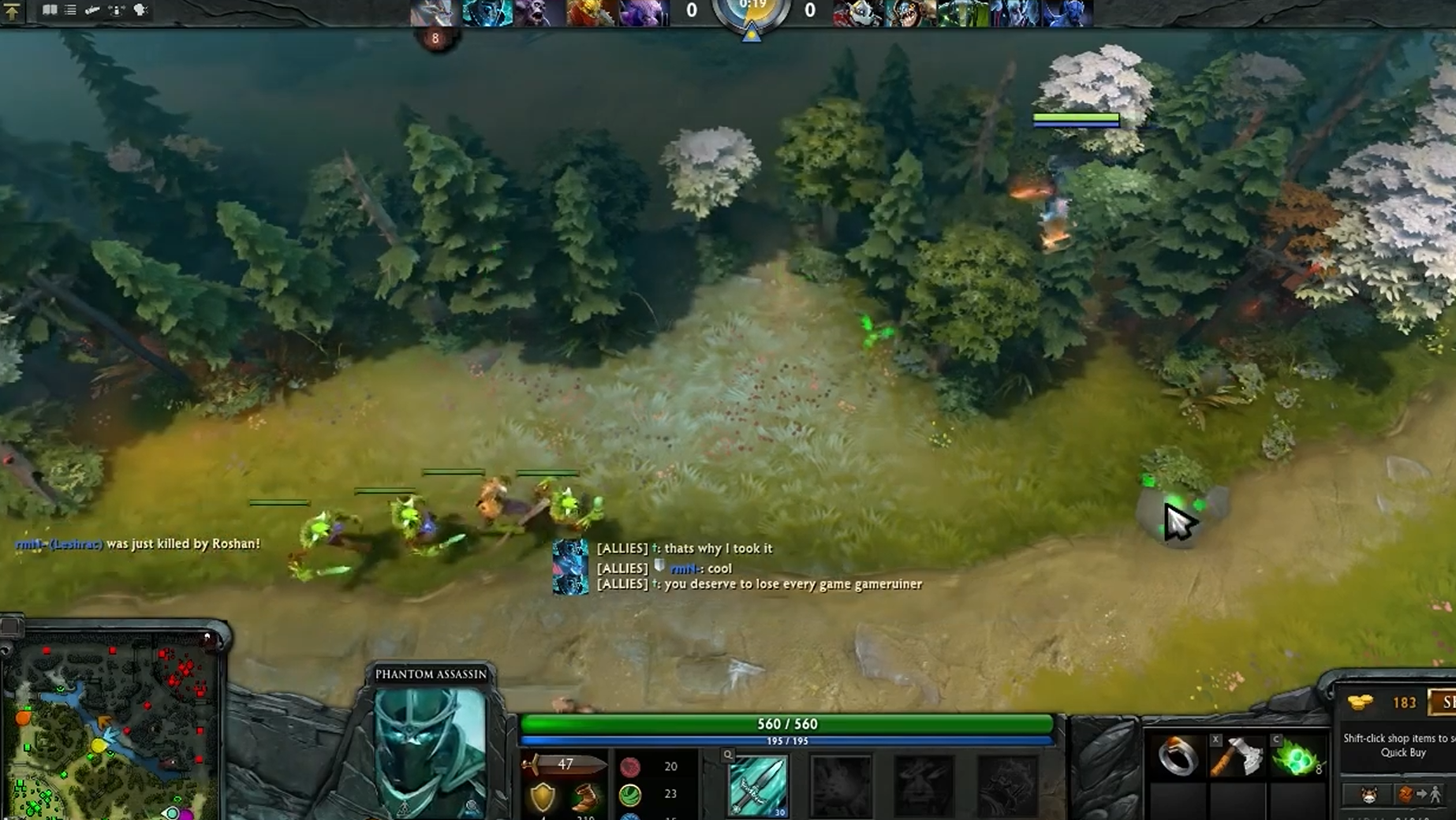 В то время баунти-руна давала золото только подобравшему, поэтому ее обычно оставляли мидерам для быстрой покупки Боттла. А Артас забрал руну у Романа, взявшего Лешрака в мид. В ответ Rmn пошел и умер от Рошана, а потом регулярно фидил вражеских героев.