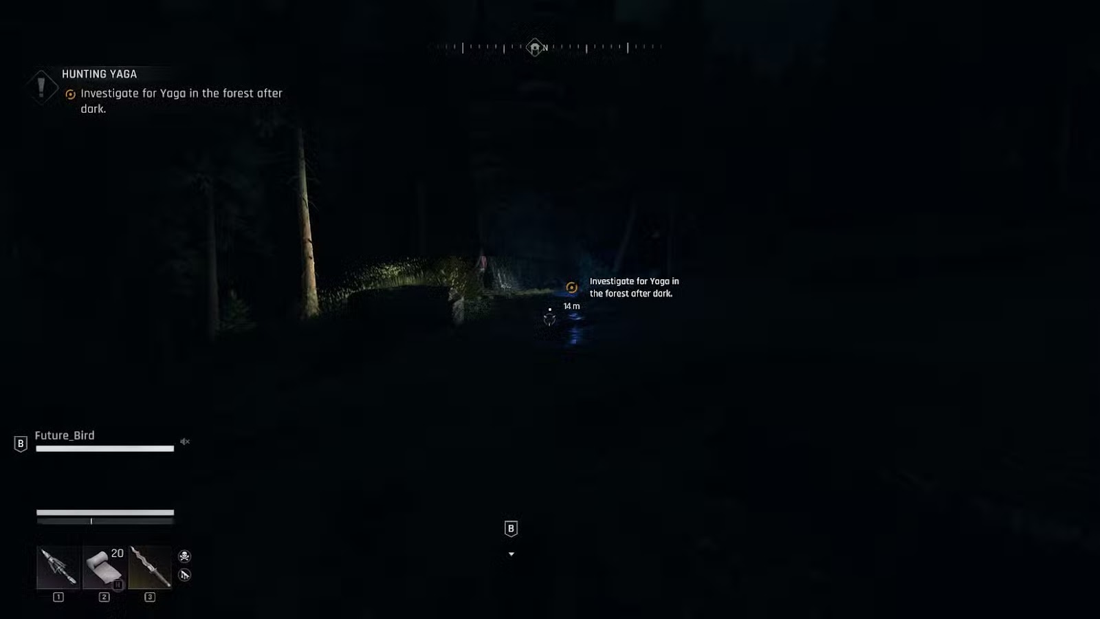 Макс, чтобы мотивировать Крейна на опасную вылазку, обещает в награду свой охотничий арбалет. Яга обитает в южной части леса, недалеко от безопасной зоны «Заброшенный дом». Перед началом миссии убедитесь, что наступила ночь — для этого поспите в любой безопасной зоне, чтобы сменить время суток.