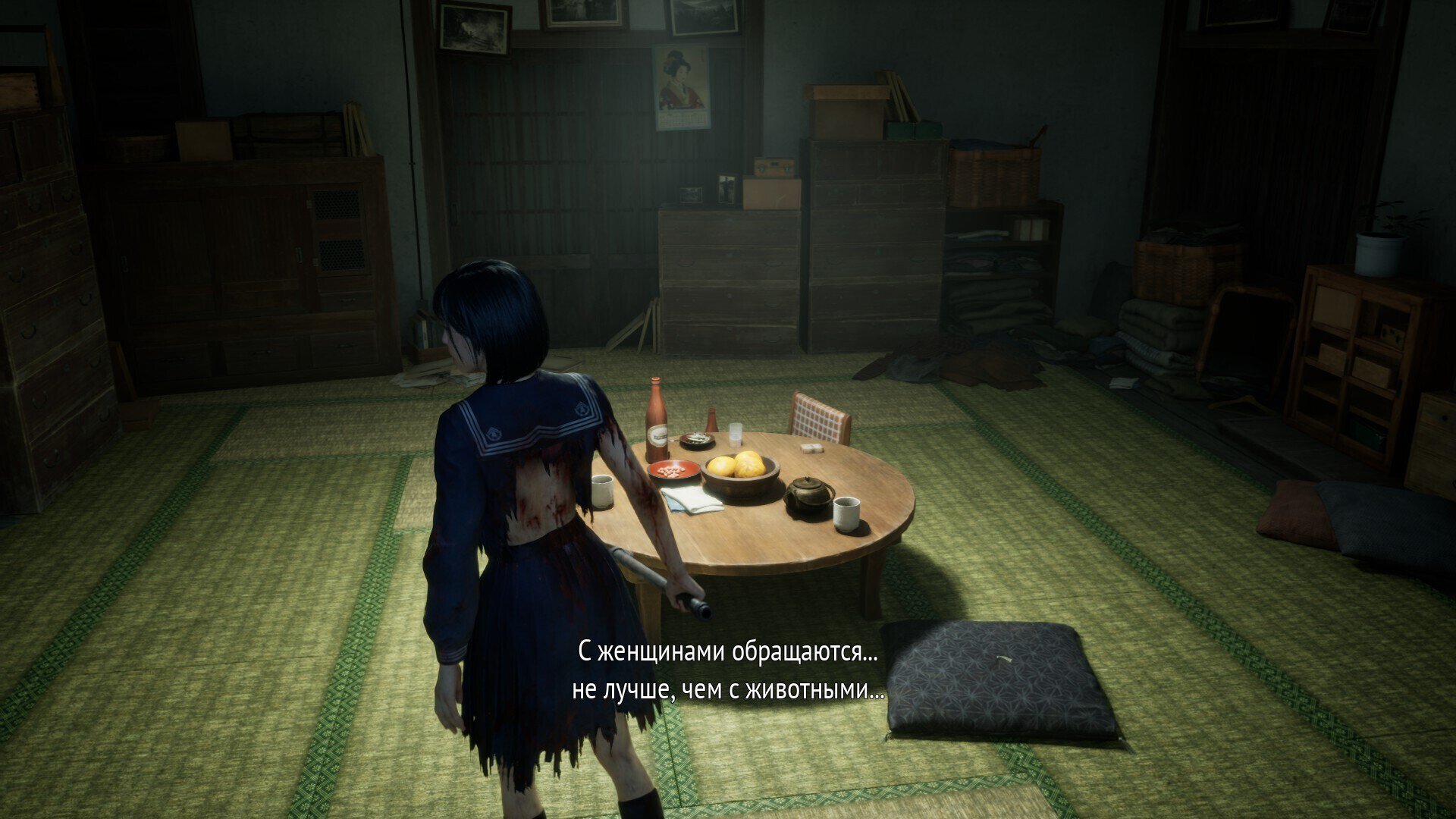 НО... как только разработчики позволяют тебе самому исследовать довольно обширную и разнообразную локацию из улочек, полей и заброшенных домов, становится действительно интересно и атмосферно. Вот тут врач проводил странные эксперименты и зачем-то собрал целую коробку вырезанных человеческих глаз. Пойдешь по другой дороге – забредешь в заброшенный храм, связанный с семьей той самой убитой подруги. История вдруг углубляется, а разработчики бережно подсовывают интересные геймплейные ситуации, чередуя напряженные эпизоды с тихим, созерцательным исследованием. Которое, естественно, прерывается внезапным появлением неубиваемого мини-босса. В общем, отлично сделанный и работающий геймплей сурвайвал-хоррора.