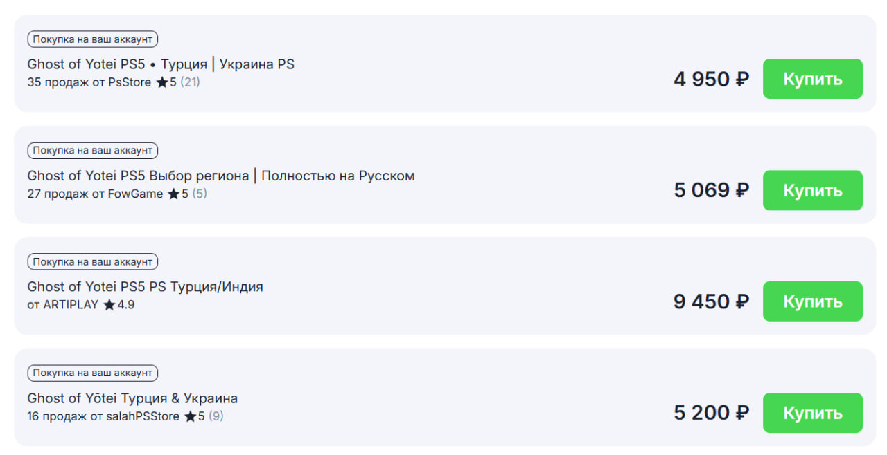 Продолжение культового «Призрака Цусимы» можно купить в онлайн-магазинах примерно за 5000 рублей. Стандартное издание в зарубежном PS Store обычно стоит 70-80 долларов, что и формирует итоговый ценник с учетом комиссии продавца.
