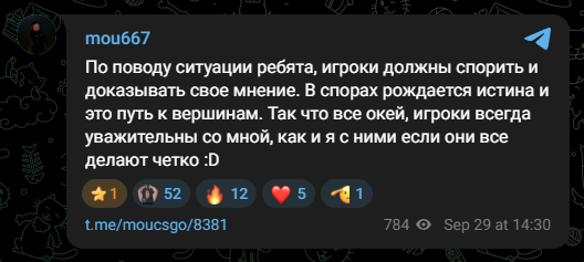 Да и n0rb3r7, скорее всего, не перейдет в HOTU на полноценной основе. Сначала mou решил пошутить в своем телеграм-канале: «Давайте скинемся на n0rb3r7а, даю 100$. Вдруг соберем на его выкуп», но после серьезно добавил: «По поводу сбора, это рофл ребят) Не знаю, какой у него контракт, и не думаю, что мы сможем на него собрать 🥲. Но спасибо, круто что комьюнити поддерживает, рахмет!»