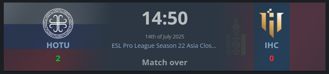 Монгольский коллектив пикнул Mirage, и на ней была близкая борьба. Но все же HOTU проиграли. В послематчевом интервью dukefissura рассказал, что они просто не смогли показать своей игры на мираже. А если бы у них получилось, то встреча бы легко закончилась 2-0.