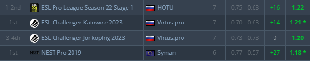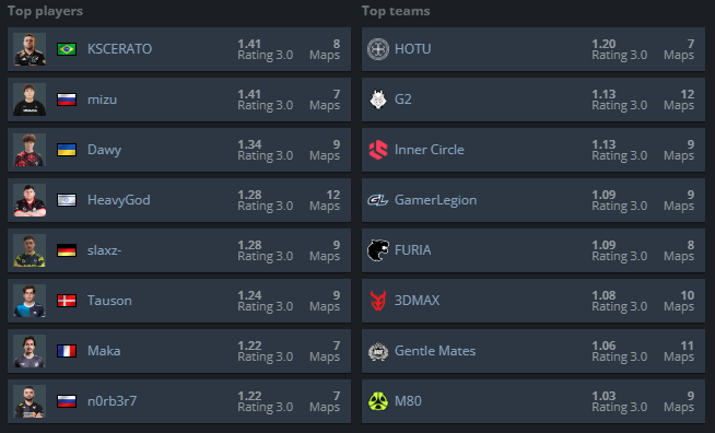 13-4 на первой карте, 13-8 на второй и HOTU становятся первой командой, прошедшей во вторую стадию EPL. А еще они стали лучшей командой первой стадии – их командный рейтинг составил 1,20, тогда как у вторых Inner Circle и G2 только 1,13.