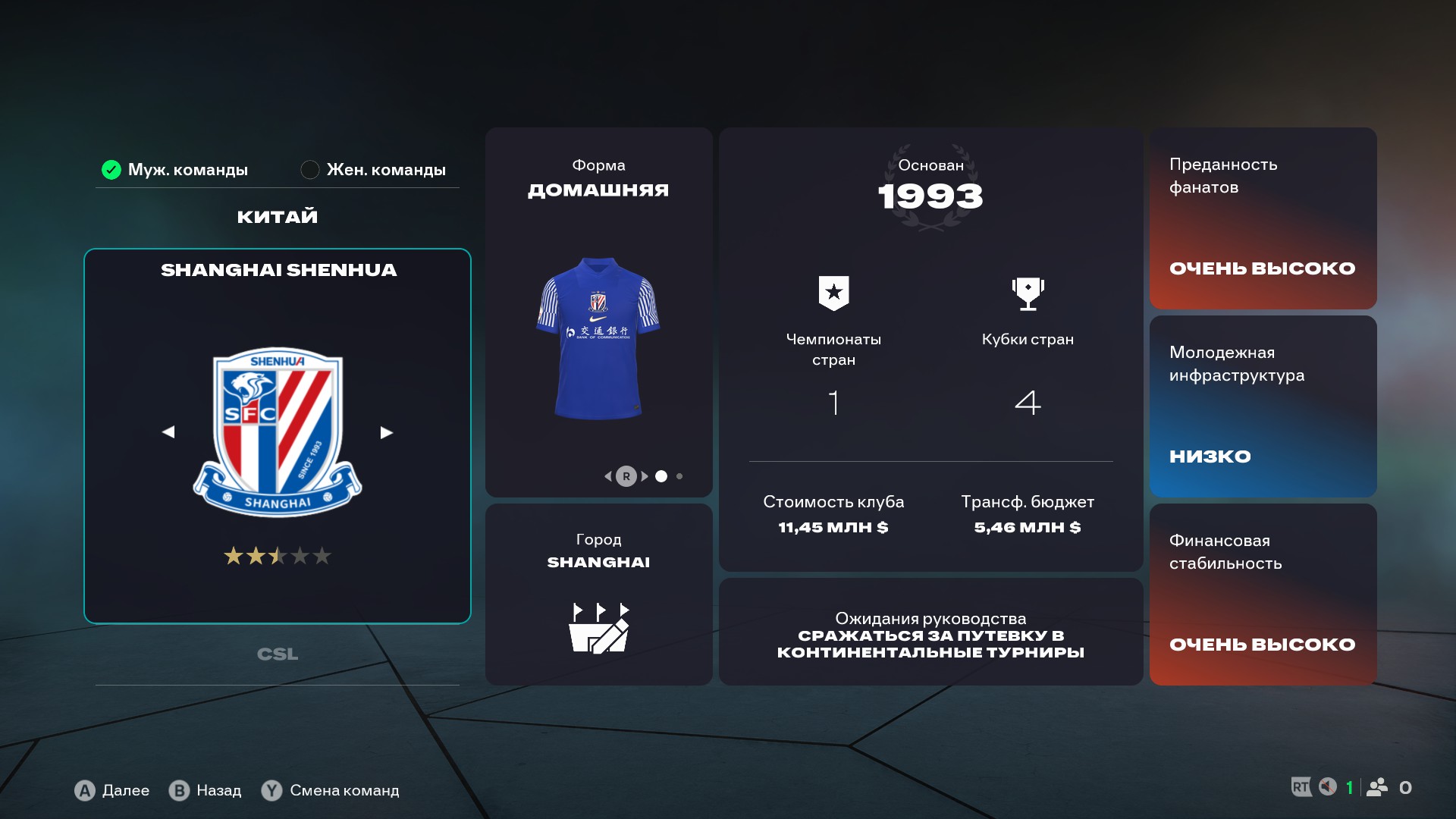 Самый экзотический вариант – «Шанхай Шэньхуа». Китайский клуб уже второй сезон тренирует Леонид Слуцкий, а Спортс’’ регулярно показывает матчи его команды и рассказывает о чемпионате. В местной Суперлиге немного звезд – хорошая возможность изучить футболистов с невысокими рейтингами и прокачать молодежку.