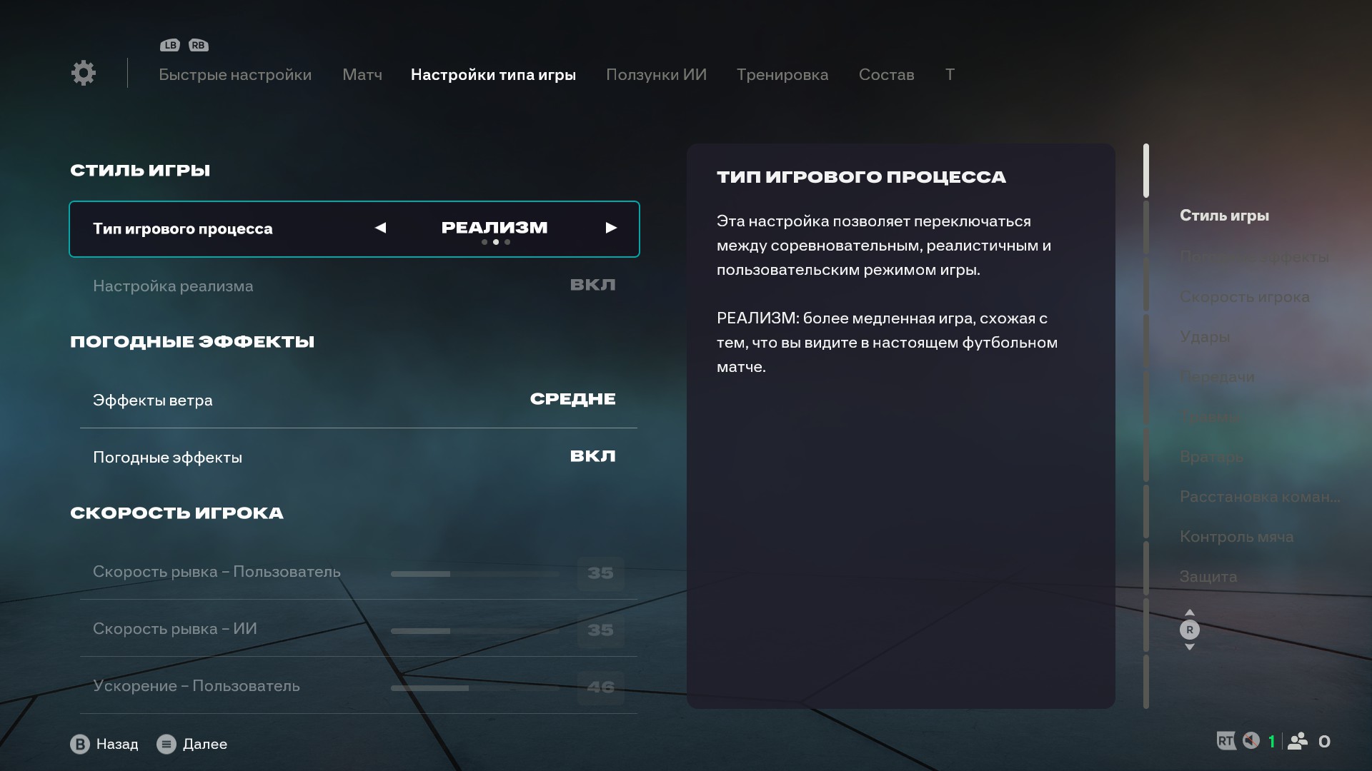 Экспериментальный реалистичный режим появился в прошлой части. EA Sports повысила отзывчивость геймплея и сделала аутентичный режим основным в карьере (хотя его всего можно переключить на обычный). В «реализме» игроки бегут медленнее и чаще ошибаются, ветер меняет траектории подач, а ИИ-защитники компактнее сидят и ворот и допускают меньше свободных зон.