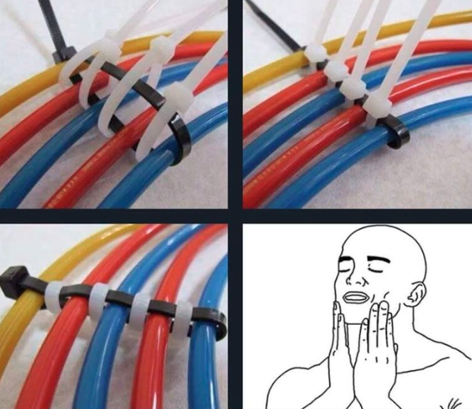 Старайтесь прокладывать провода рядом друг с другом, а после того как закончите сборку, скрепите лежащие рядом провода стяжками – так все будет смотреться куда аккуратнее. Пучок из нескольких кабелей выглядит лучше, чем те же кабели, торчащие в разные стороны.