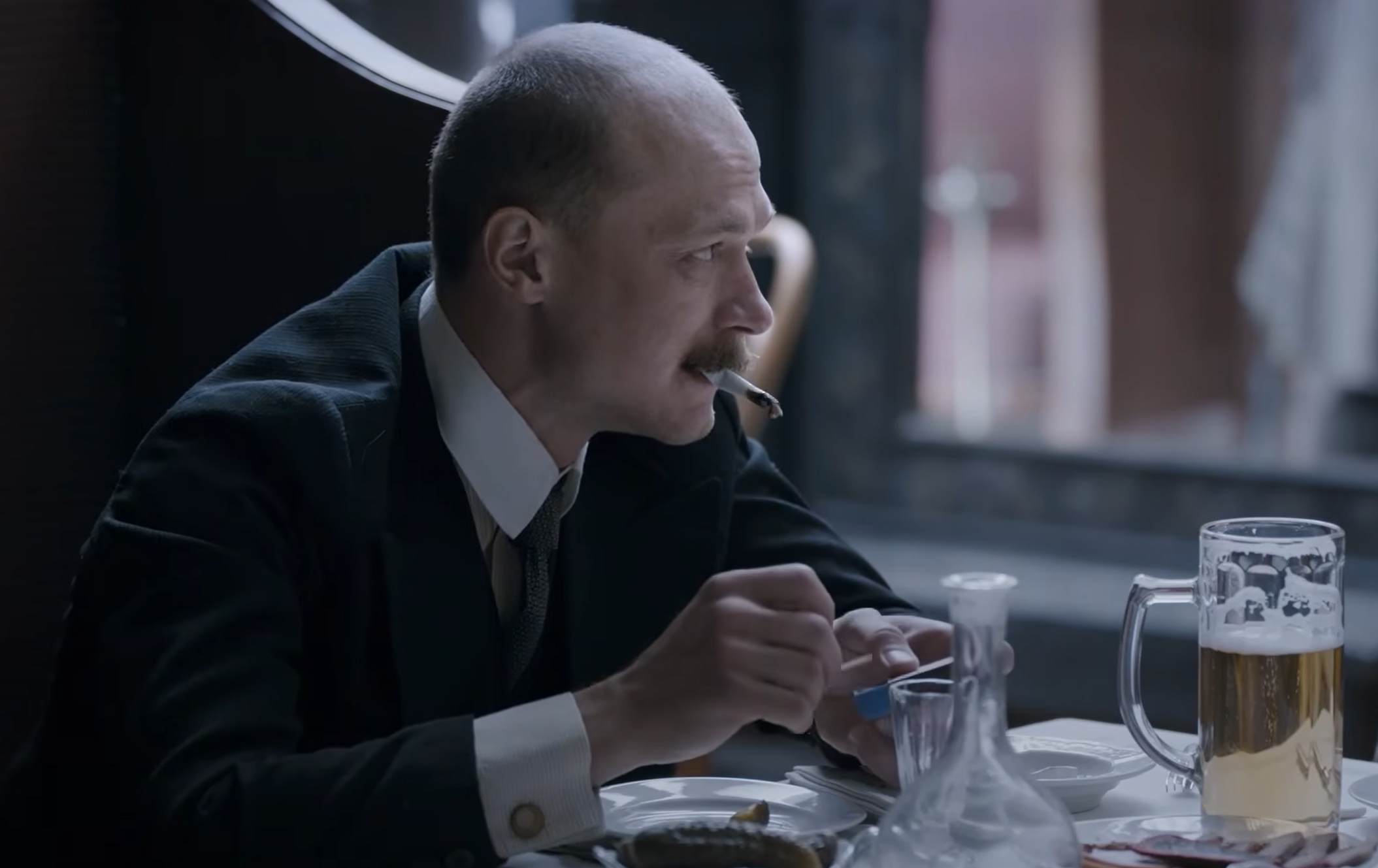 В ресторане «Вена» Распутин рассказывает Прохорову, что царь переживает из-за коррупции и гибели русских солдат на войне, которую развязали англичане: