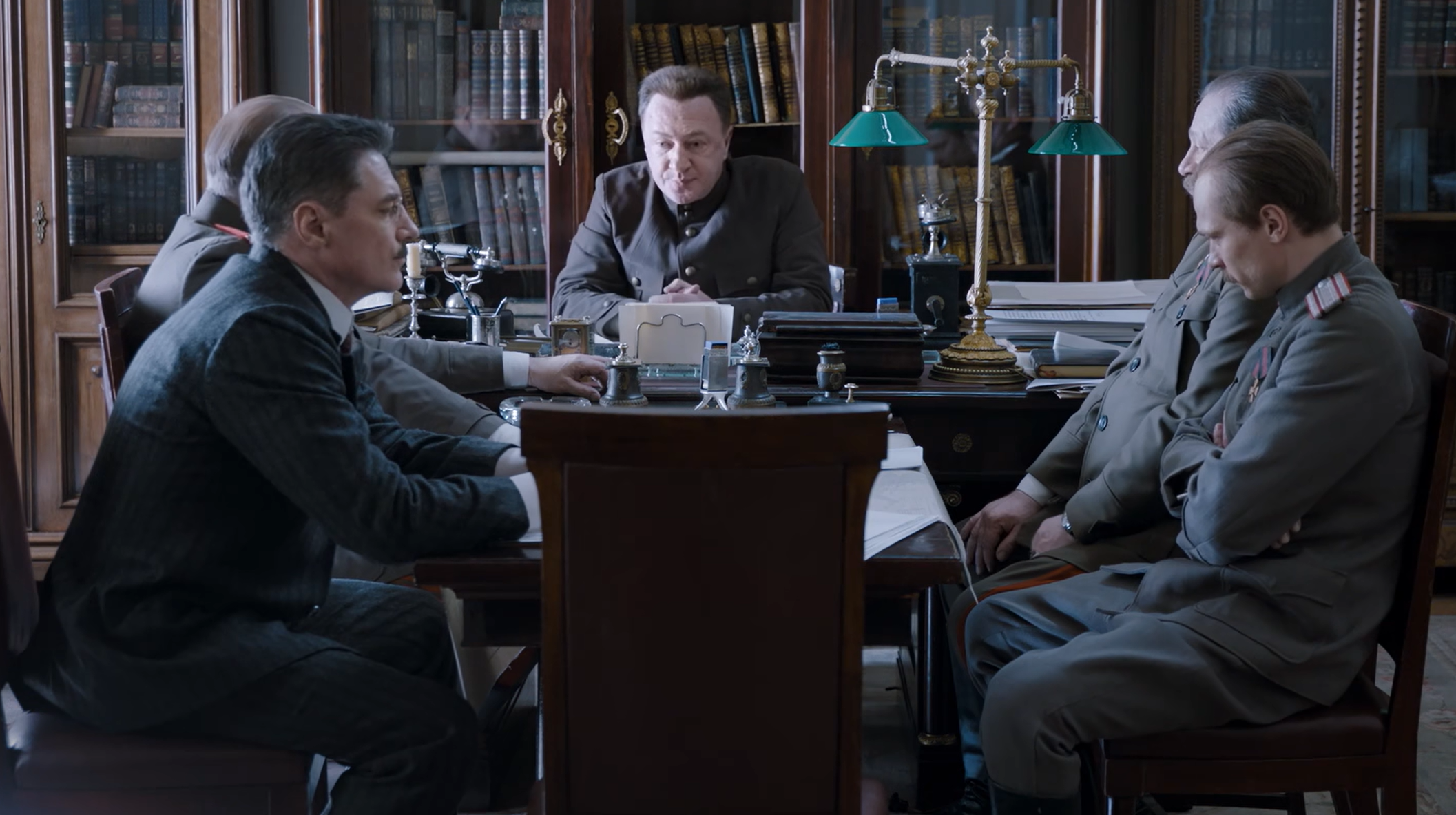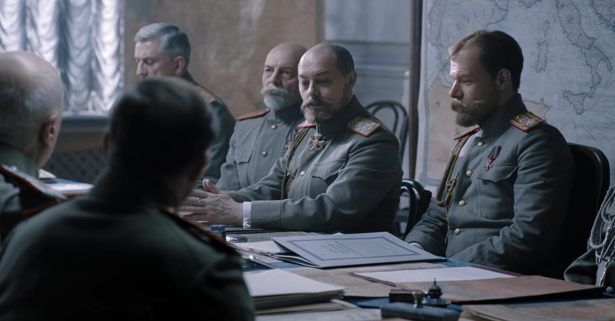 Министерство юстиции. Александр Керенский принимает группу высших военных чинов: генерала Маниковского, генерал-майора Батюшина, генерал-лейтенанта Потапова и полковника Прохоров. Офицеры предлагают национализацию военной промышленности, чтобы избегать коррупции.