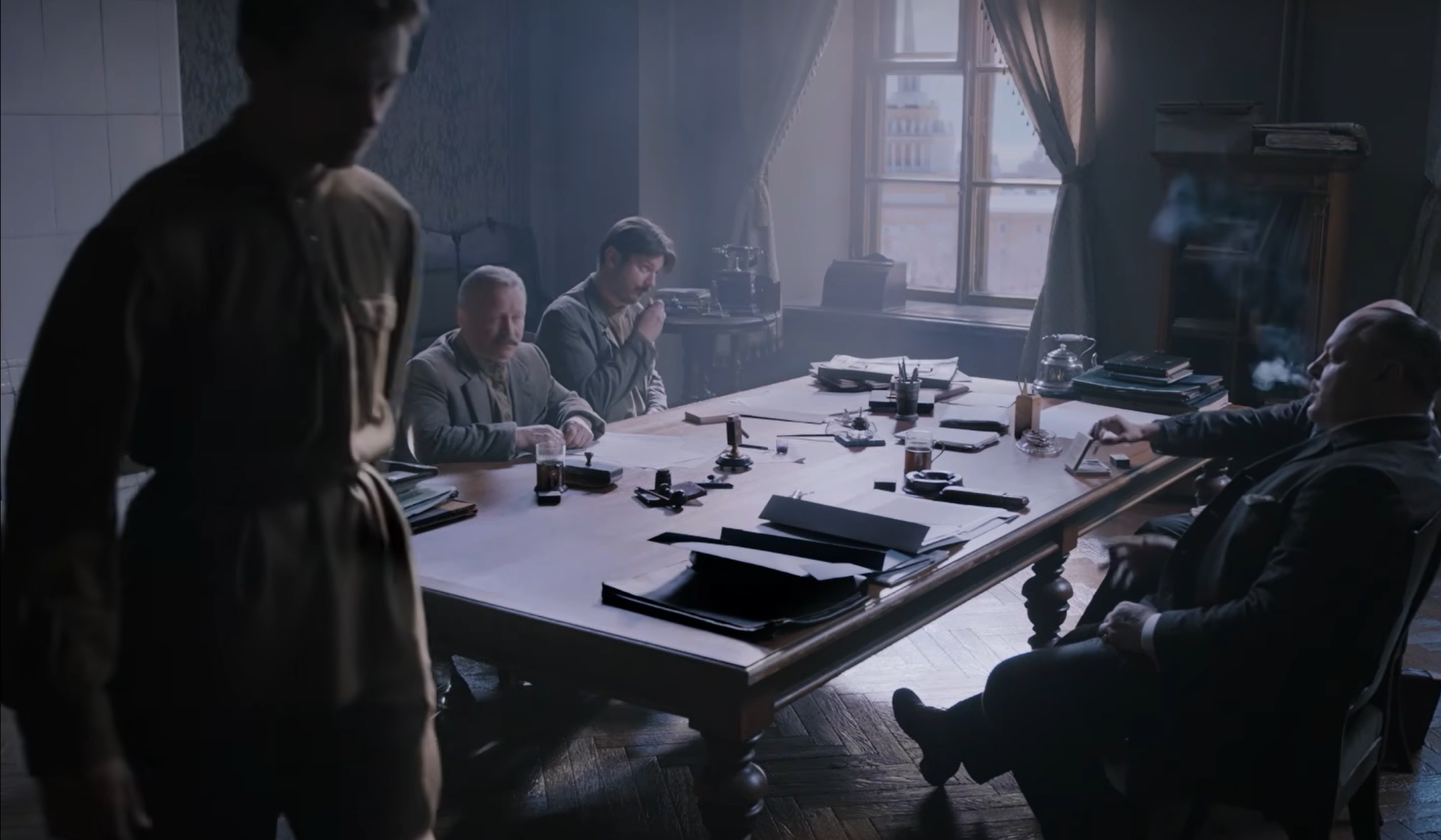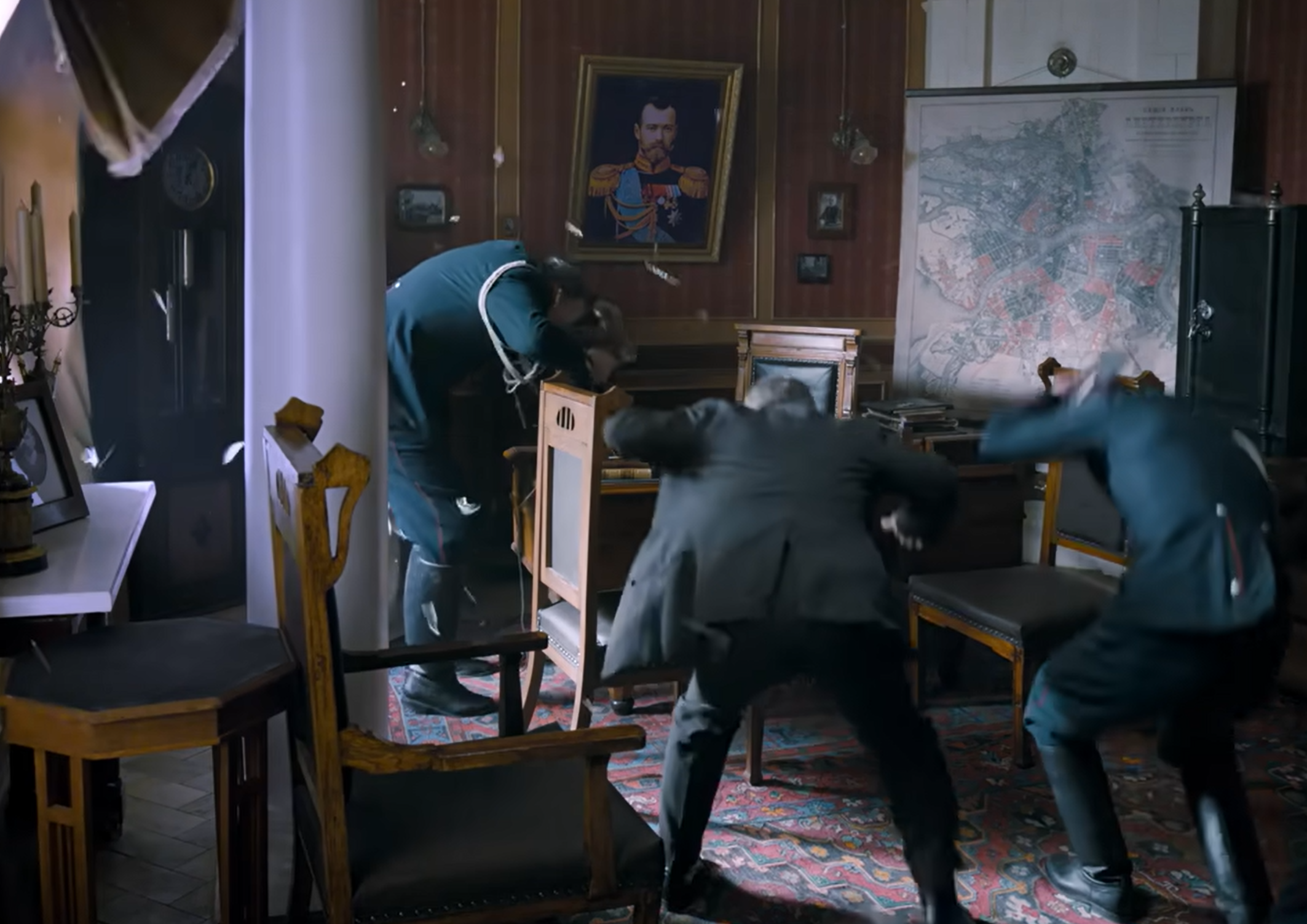 Раздается звонок – Николай II выезжает на вечерю, а их отделу поручено обеспечить охрану государю. Внезапно в здании напротив раздается взрыв такой силы, что в кабинете Курловского вылетают окна.