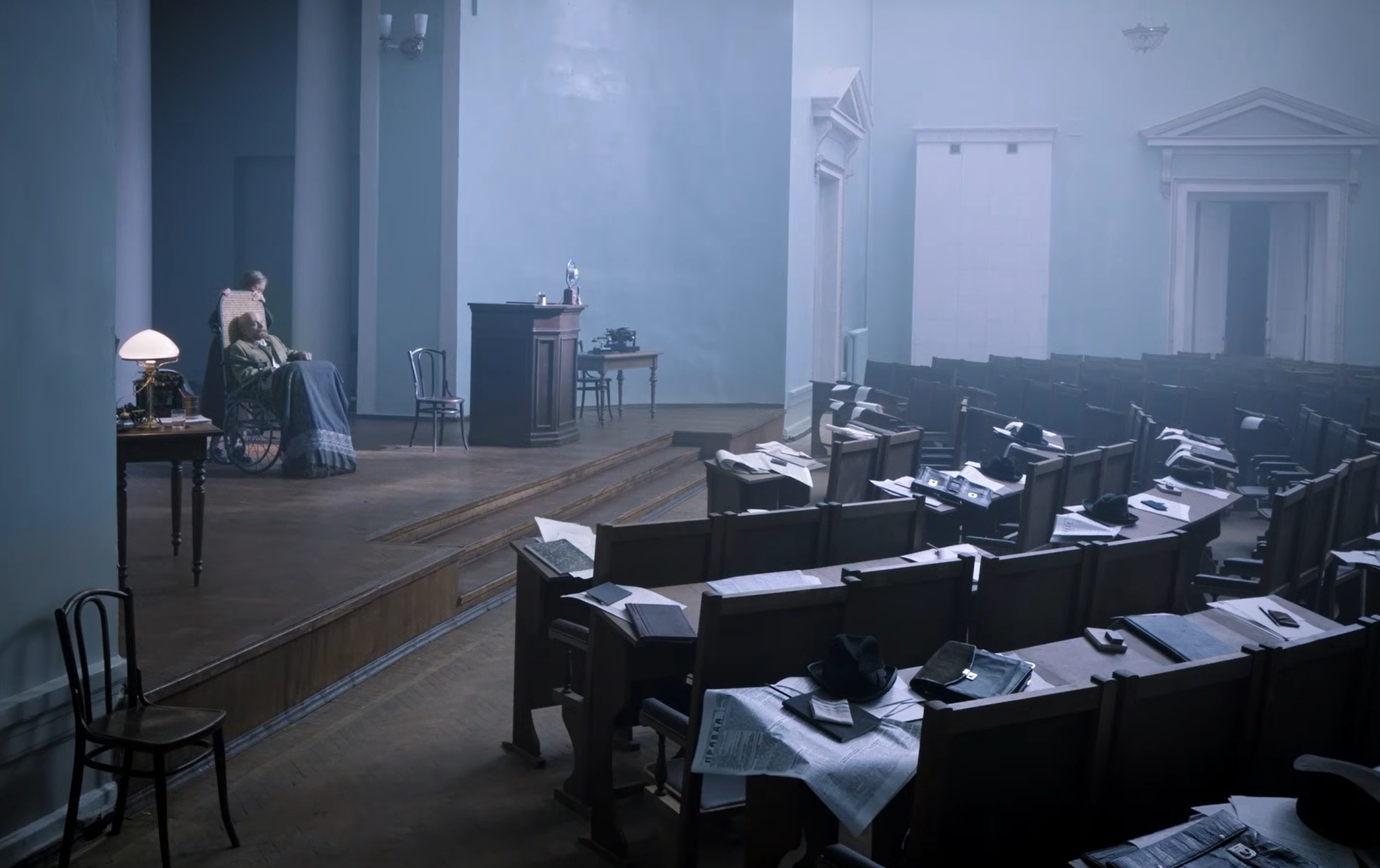 В Кремле Крупская и Ленин не находят тетрадь – вождь осознает, что его записки уже прочли. Они ездят из зала в зал, но везде пусто – во всем Кремле нет ни души, будто людей нарочно кто-то выгнал. Крупская плачет над обреченным и опустошенным мужем.