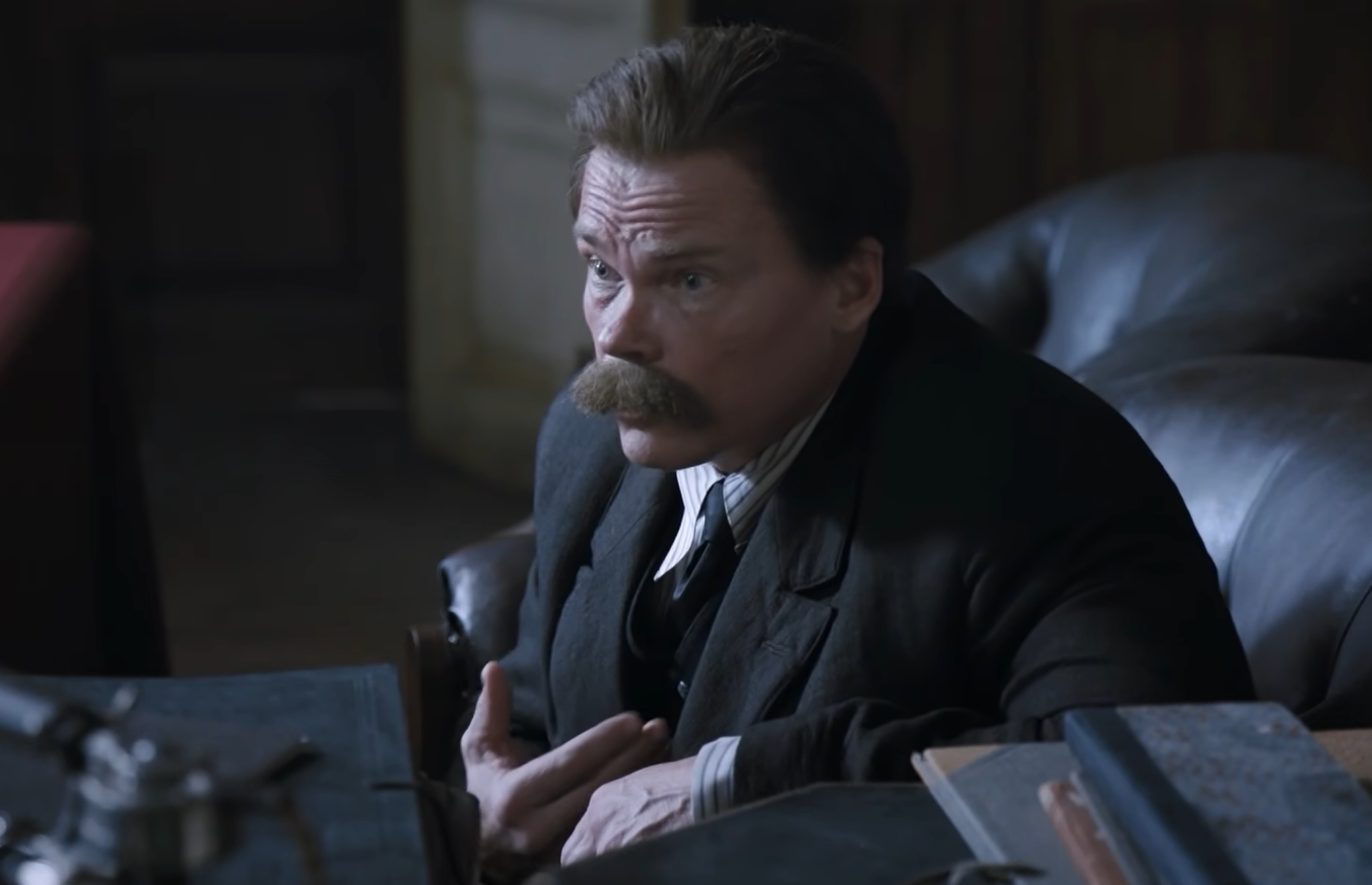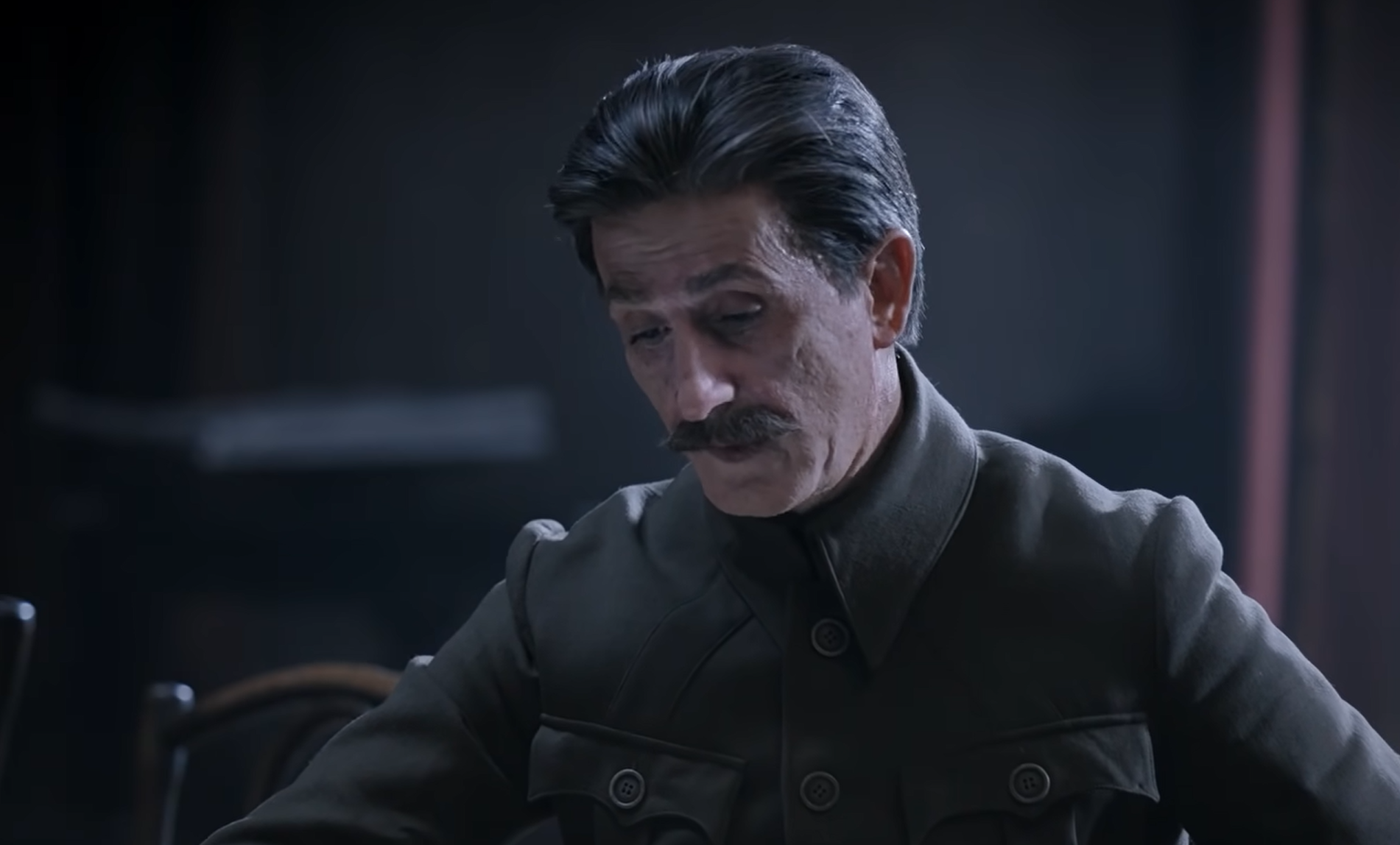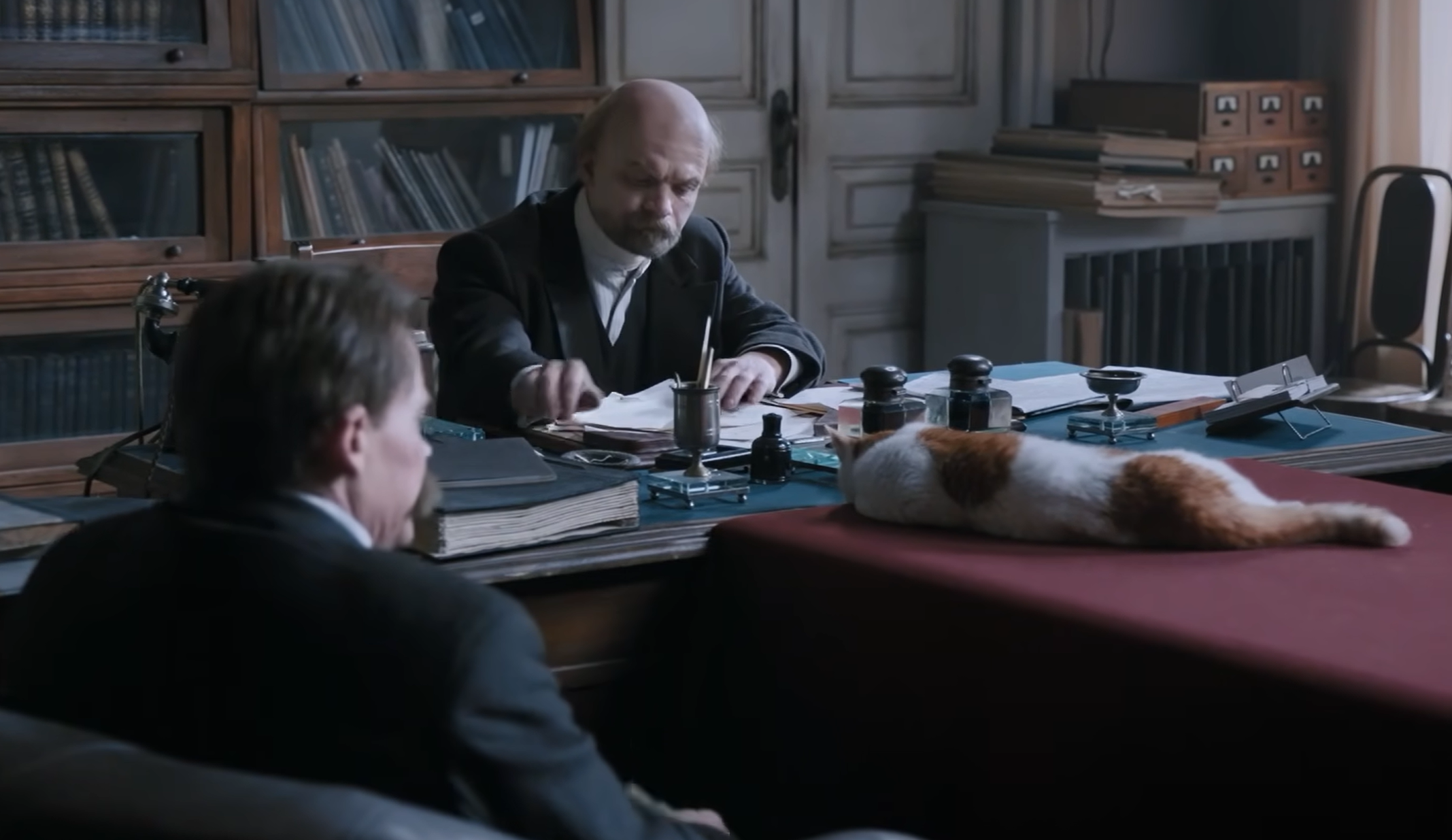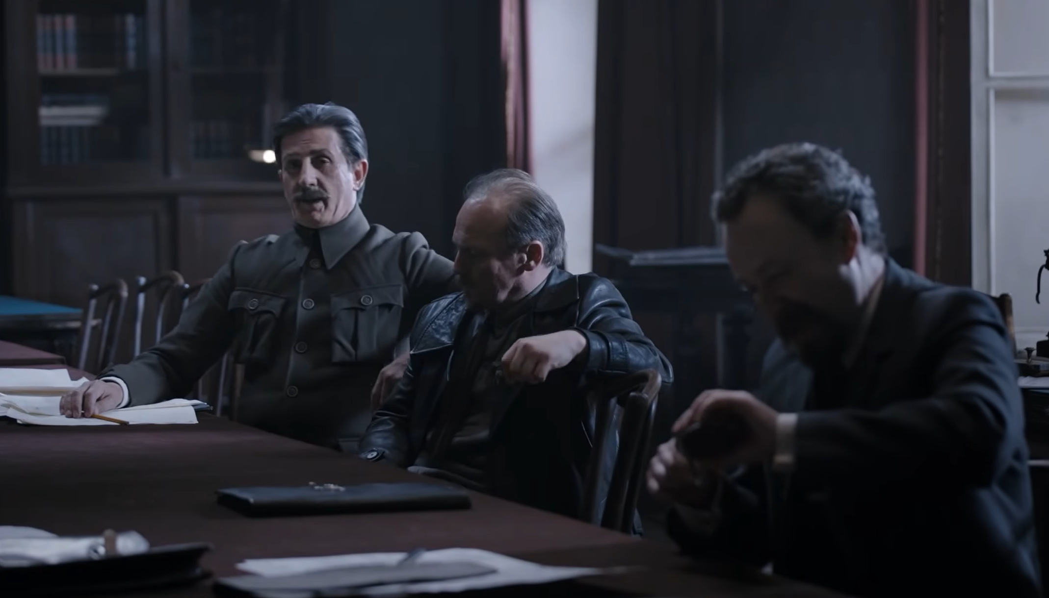 Затем Тихомиров отдает Сталину черную тетрадь, которую нашел в кабинете Ленина – там записки вождя за много лет. Иосиф Виссарионович находит строчки и о себе: «Сталин очень груб. Этот недостаток становится нетерпимым в должности генсека». Грузин признает, что он и правда груб, но только по отношению к раскольникам режима. Из дневника становится понятно, что Ленин хотел его сместить с должности – Сталин считает, что это проявление болезни вождя, поэтому нельзя его осуждать.