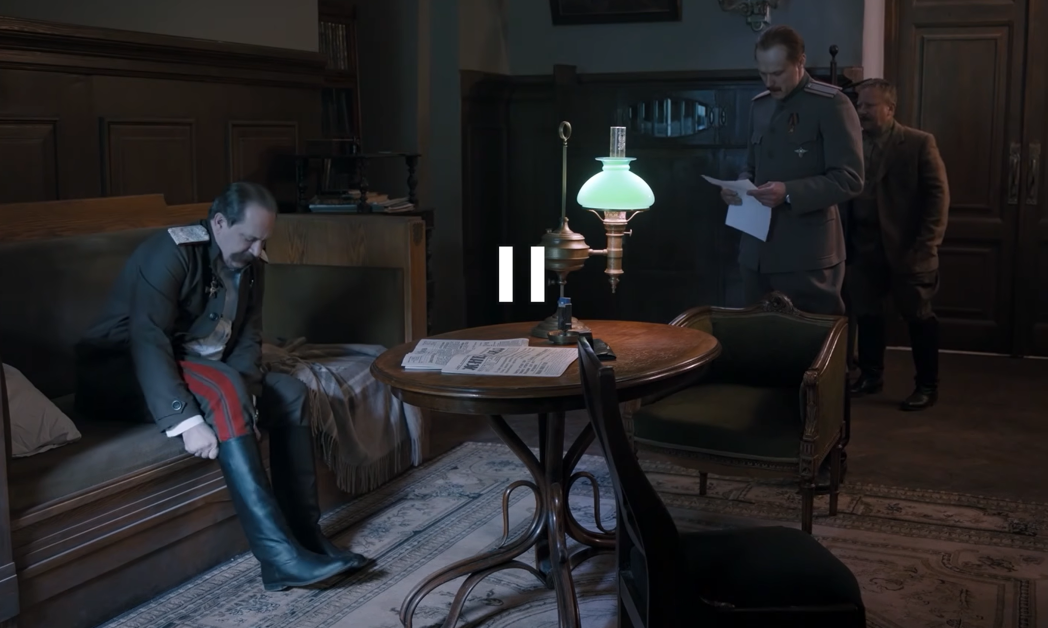 Прохоров передает папку государю, но Николай II и без отчетов все знает – люди воруют с молчаливого согласия царя. Николай II вешает на грудь Прохорову орден и приказывается написать рапорт об увольнении из департамента полиции. Правитель говорит офицеру подать документы на работу в генеральный штаб армии.