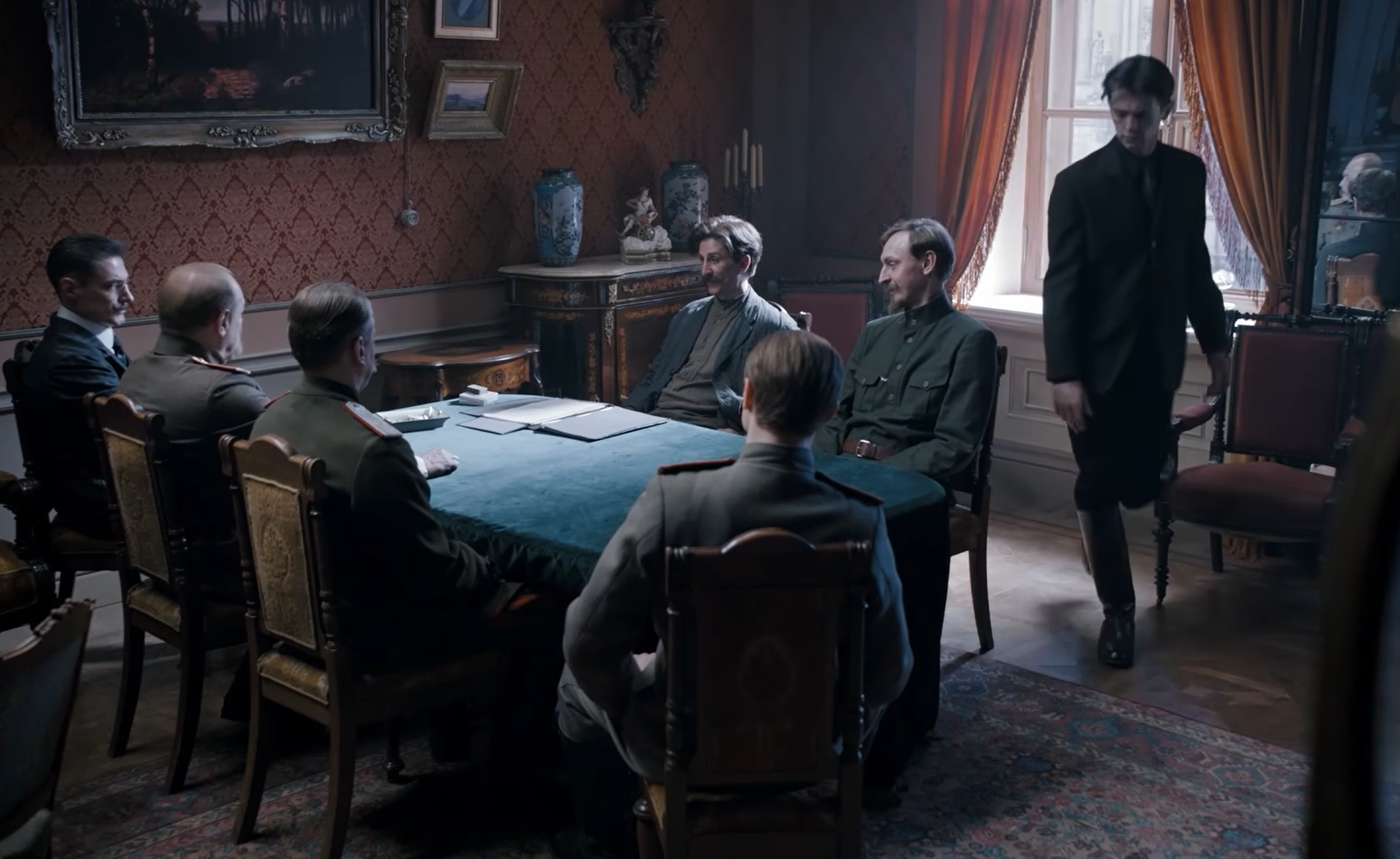 6 июля 1918 года. В посольстве Германии Блюмкин убивает посла Германии, о чем докладывают Ленину. Лидер понимает, что их хотят втянуть в войну с Германией и всеми силами пытается этому помешать.