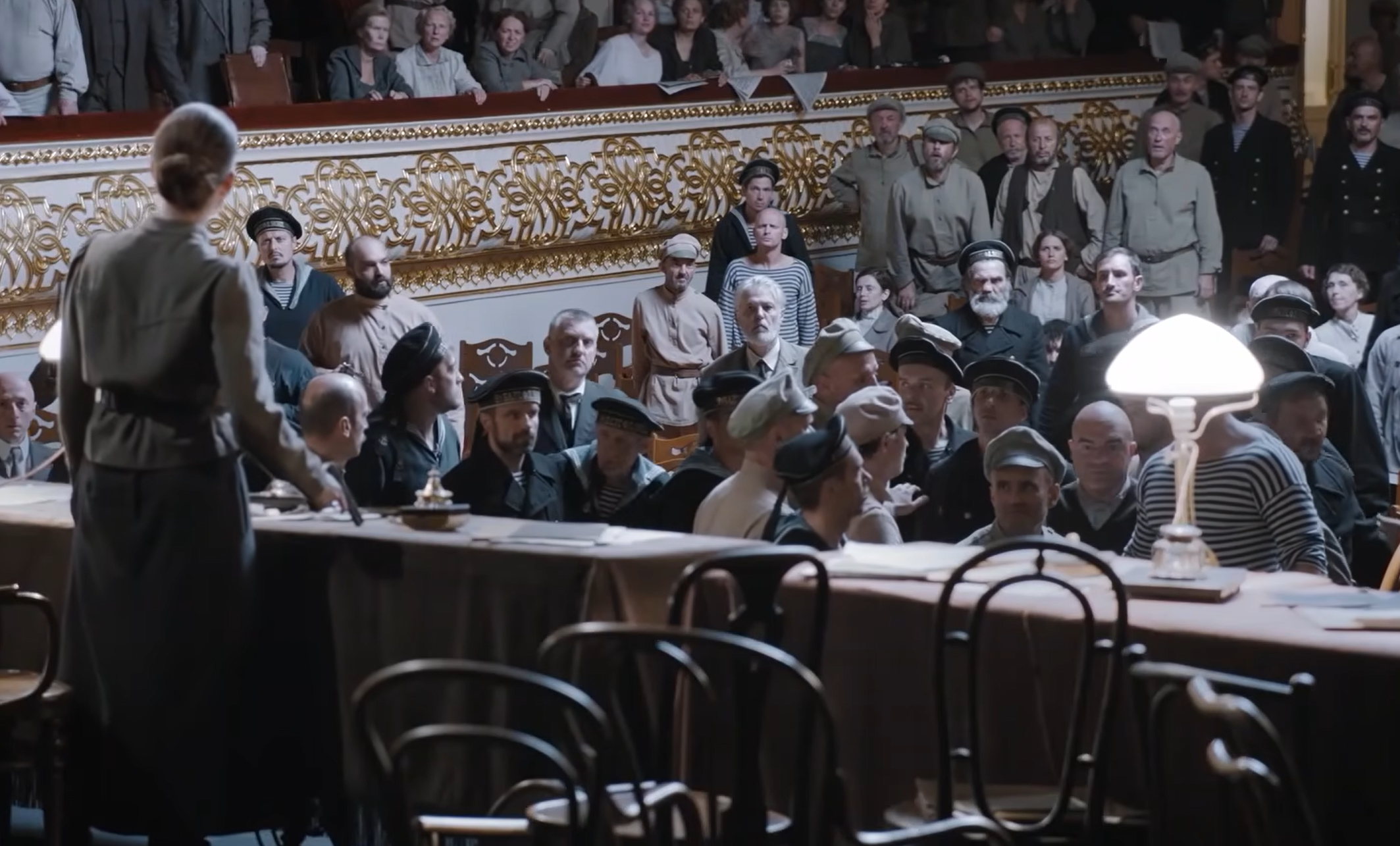 Историческая вставка. Учредительное собрание, призванное выбрать первое демократическое собрание России, проходит в напряженной атмосфере. Непримиримые разногласия делегатов ведут к анархии и хаосу. Ленин понимает, что взять ситуацию под контроль невозможно. Принято решение сорвать учредительное собрание.